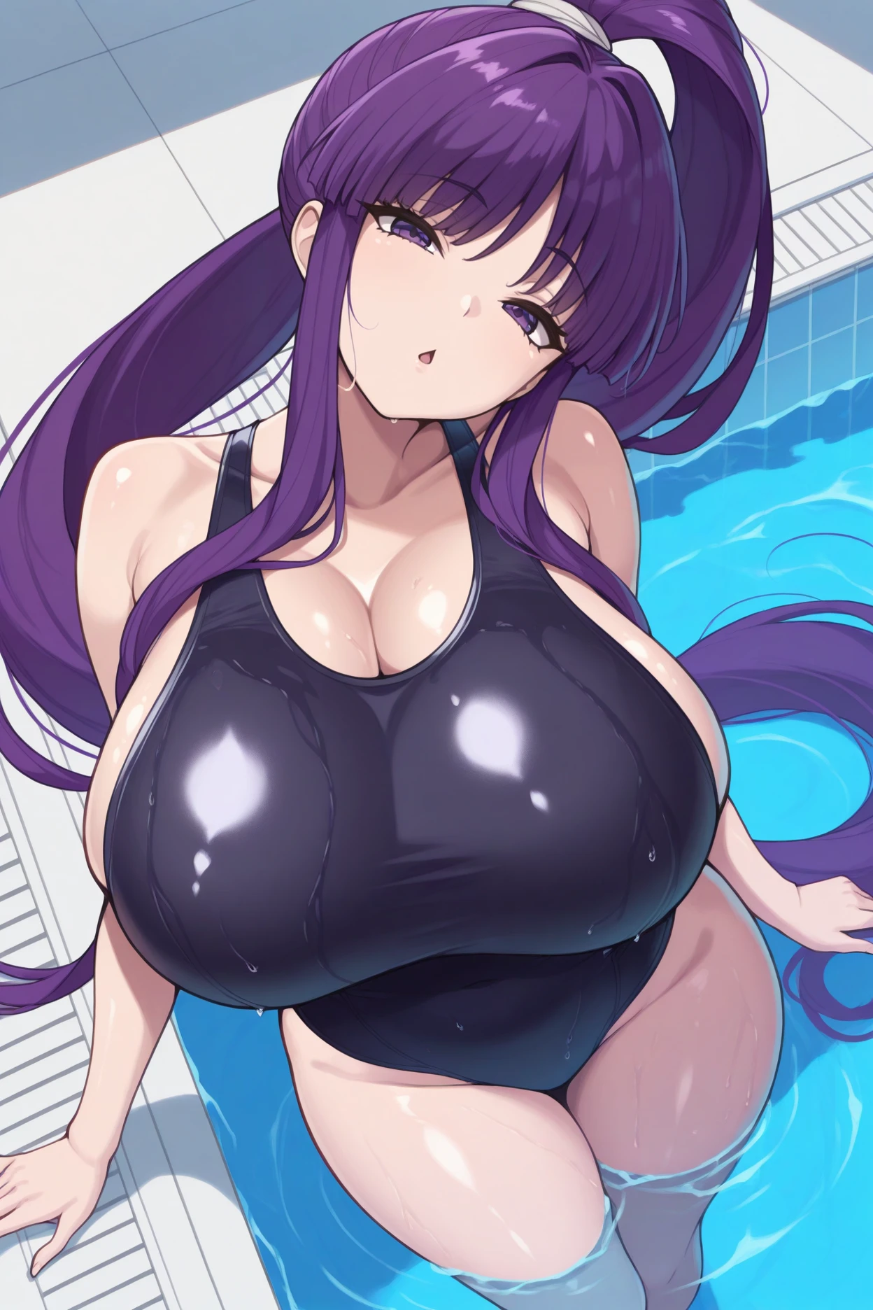 Add "black bikini, o-ring bikini" for her swimsuit.