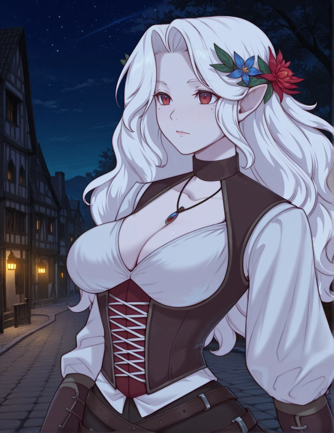 2)fantasy_outfit2, vest, corset, blouse,wavy hair