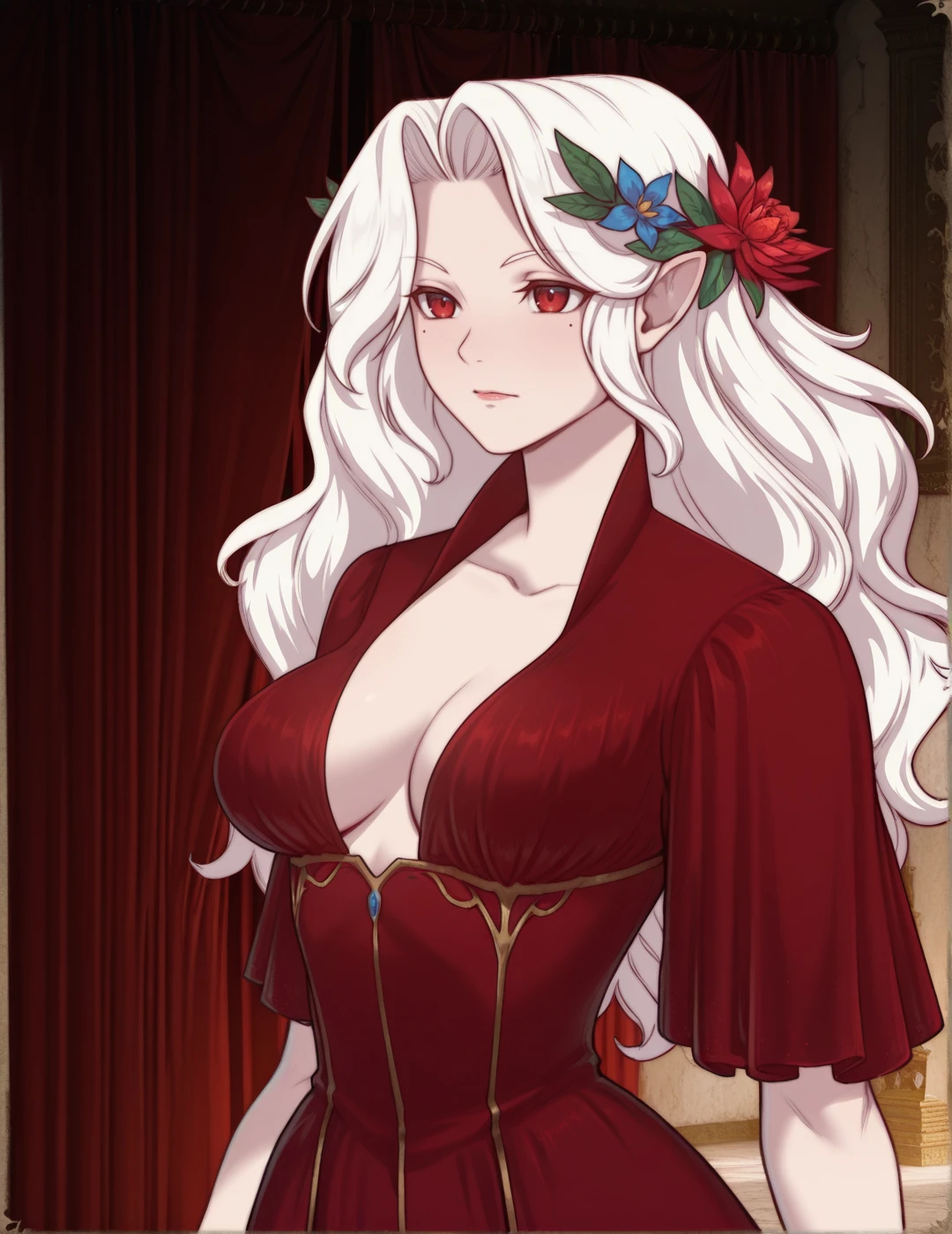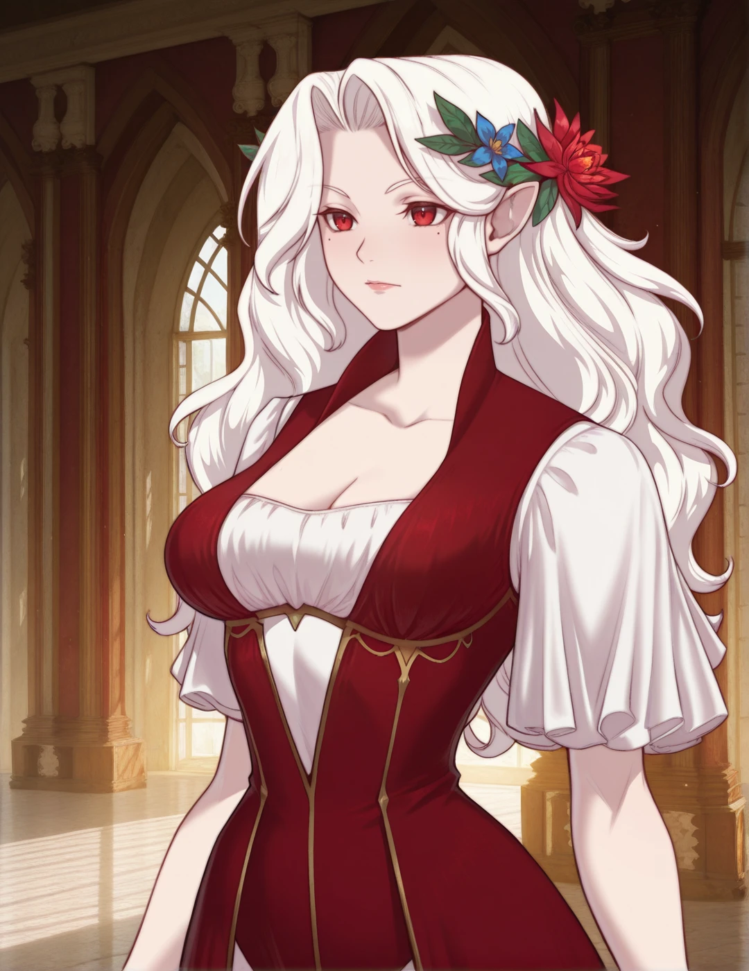 mole under eye, mole,white hair, red eyes,