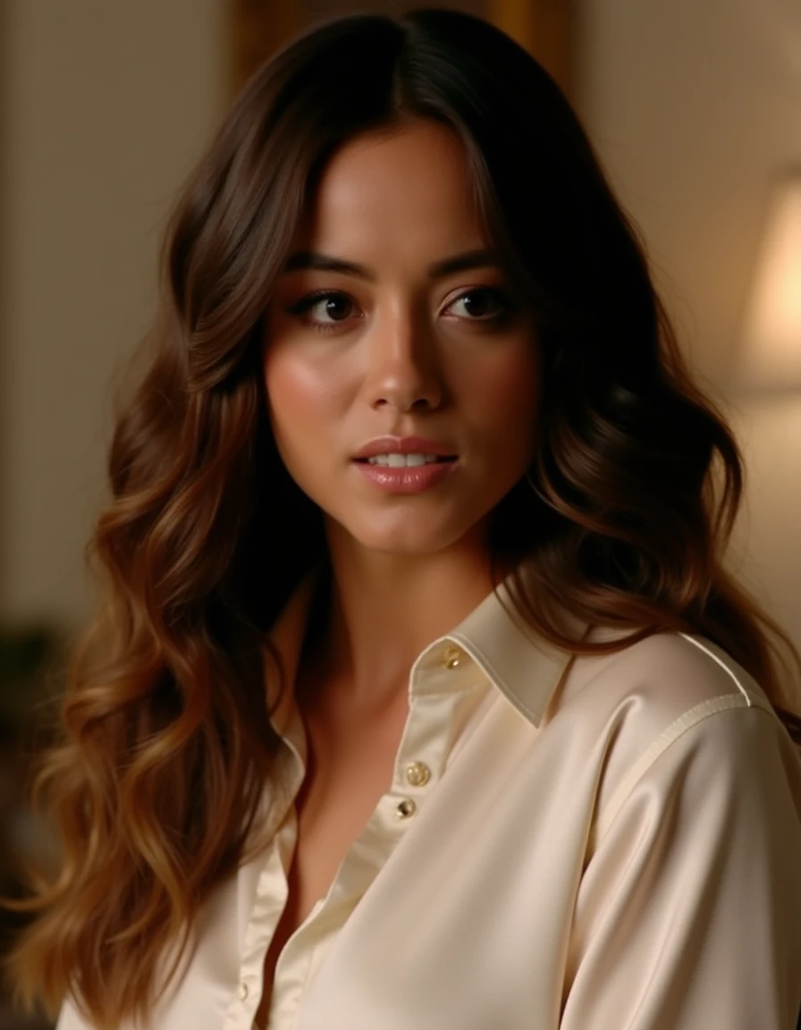 chloe bennet, parted lips, teeth, long brown hair, brown eyes, wide jaw