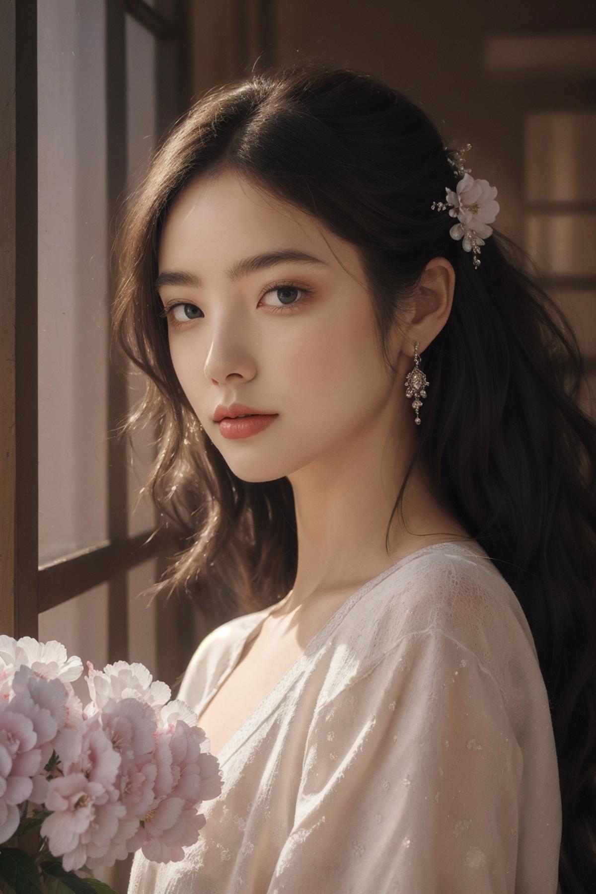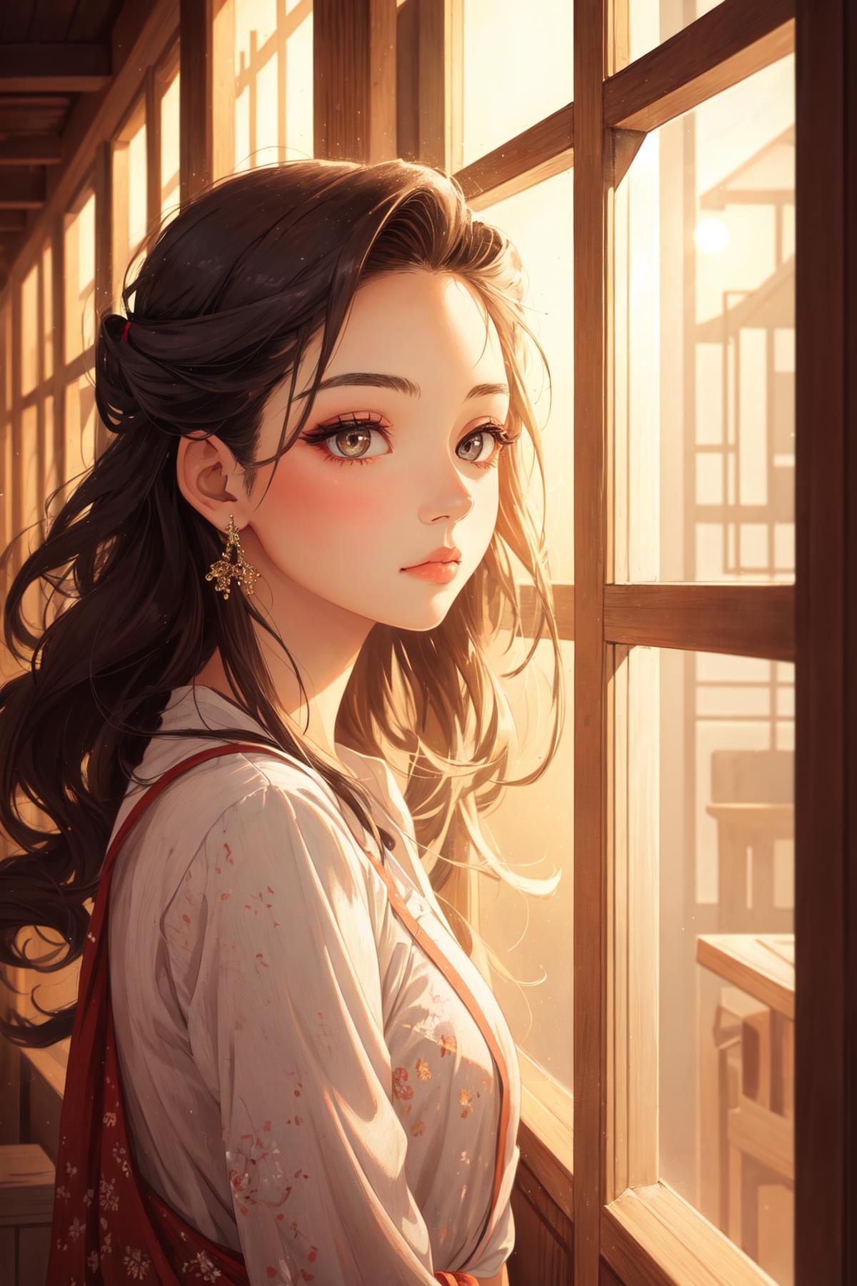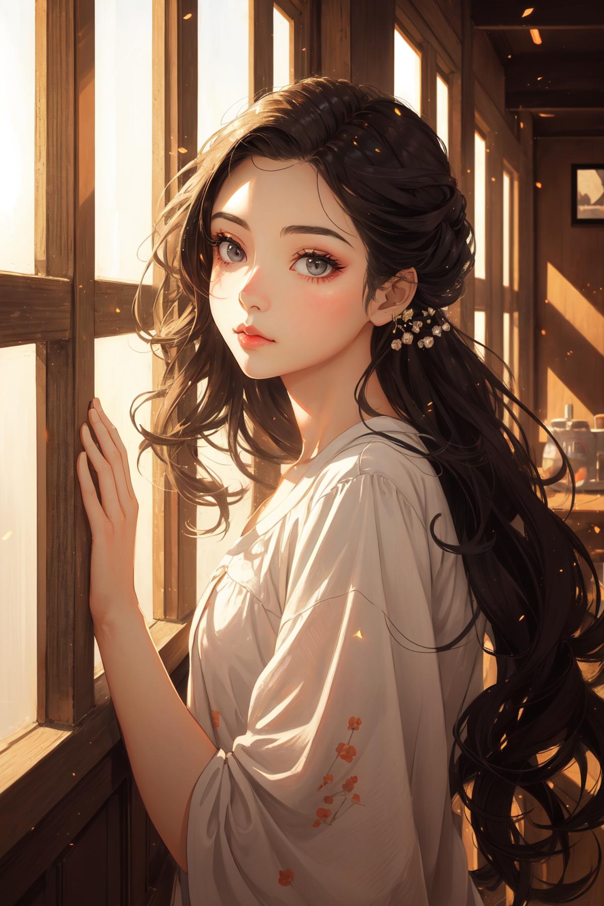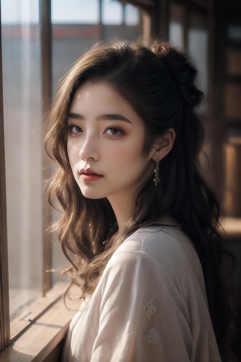这款LoRA主要用于生成逼真的人像,只需要简单的提示词就可以生成稳定的效果,背景是传统木窗,图像中呈现从窗外照射进来的自然且柔和的光影。