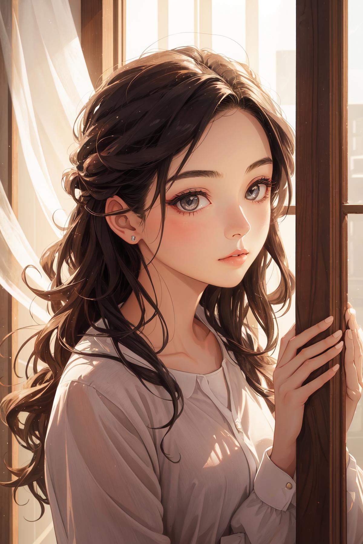 This LoRA is mainly used to generate realistic portraits. It only needs simple prompt words to generate a stable effect. The background is a wooden window, and the image presents natural and soft light and shadow shining in from the window.