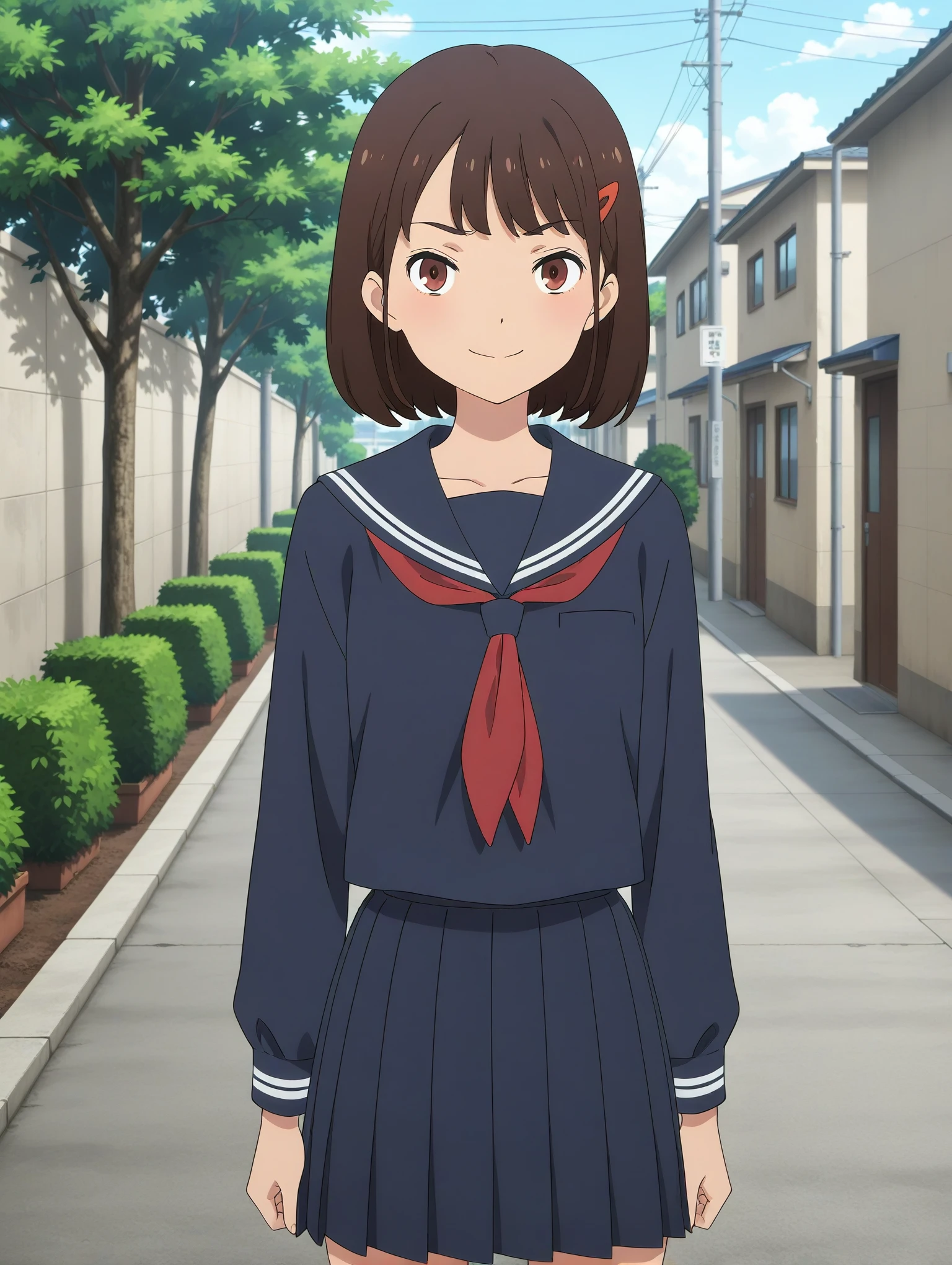 SanadaMiori, short hair, brown hair, hair ornament, hairclip, brown eyes,