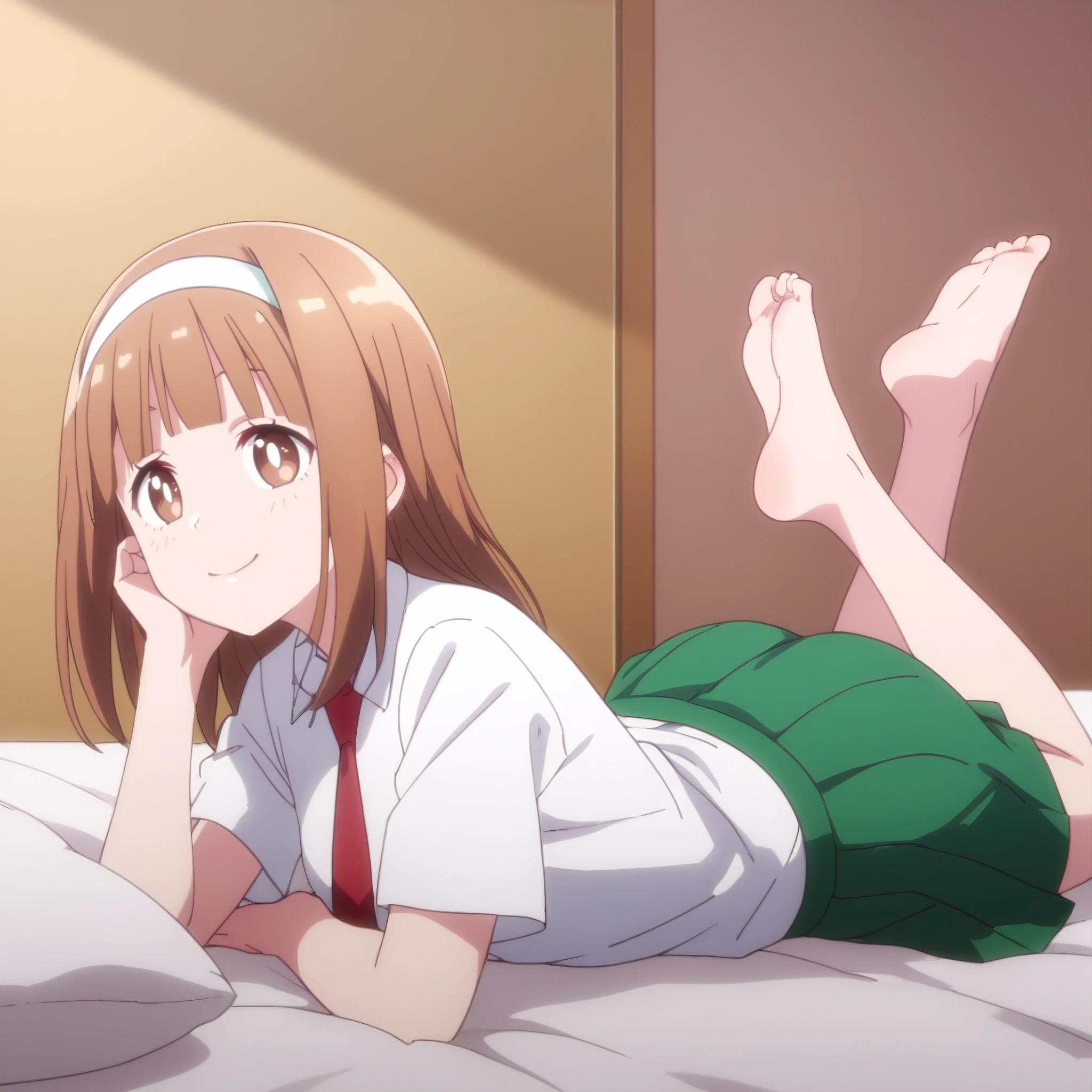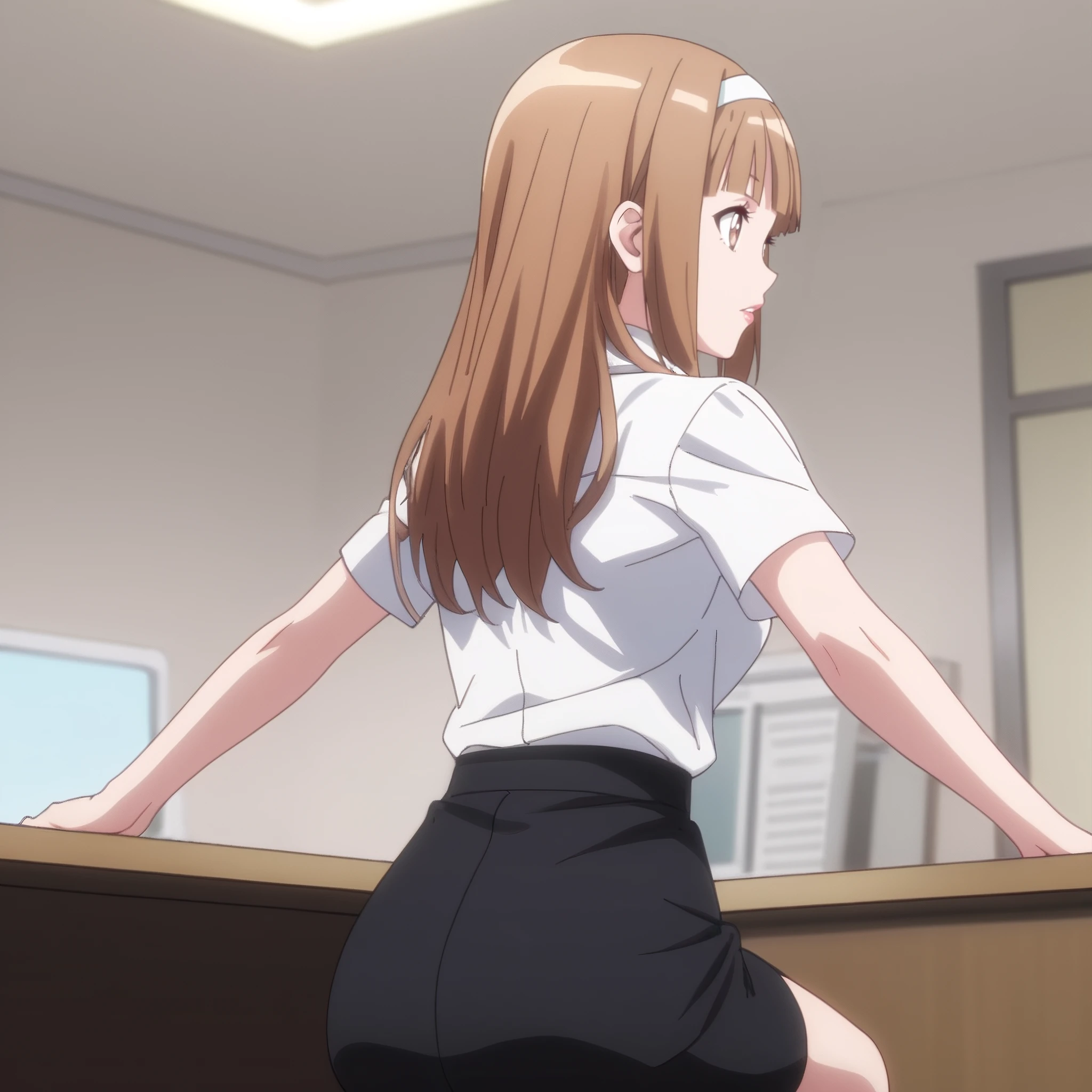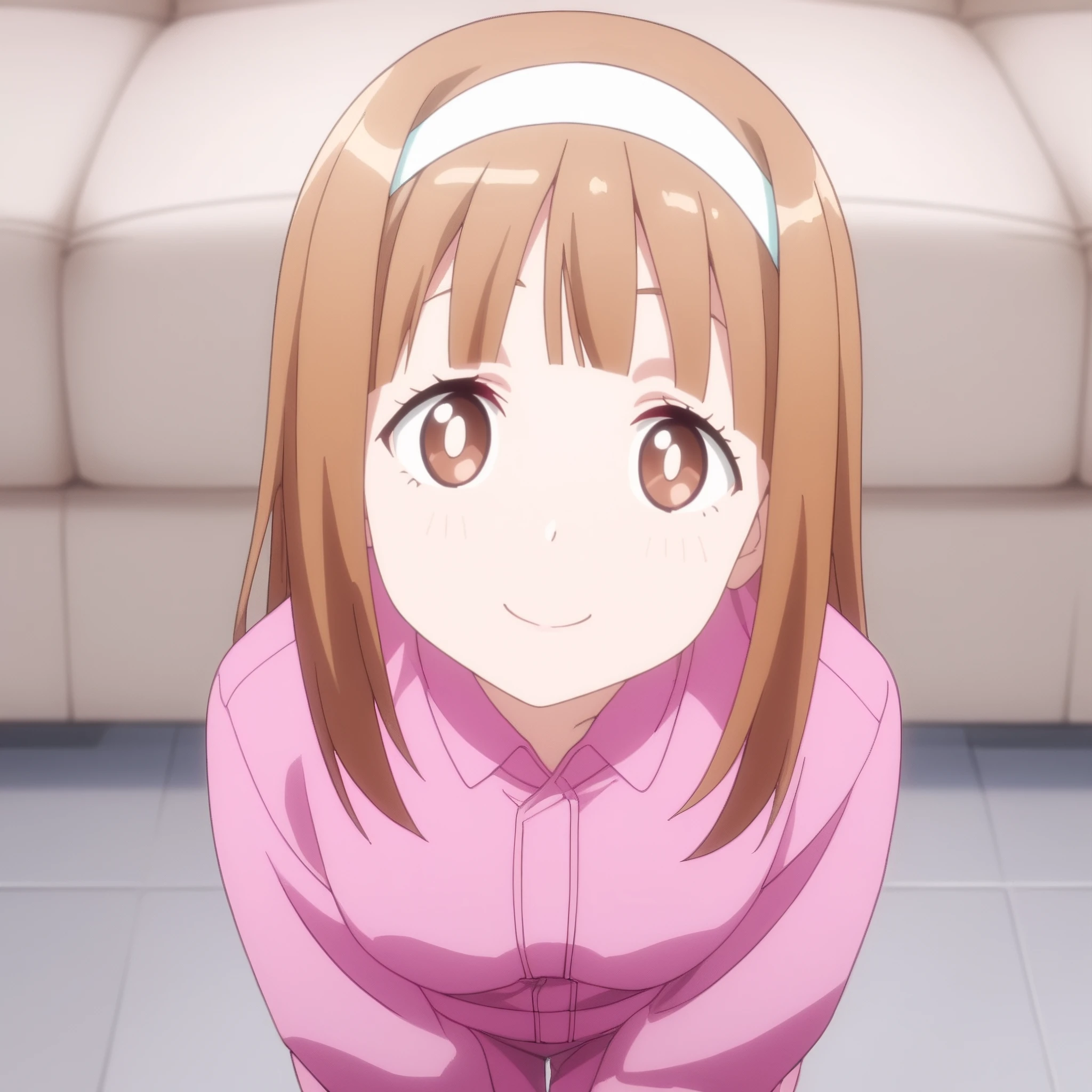 ANAAiko, brown hair, long hair, hairband, bangs, white hairband, blunt bangs, brown eyes, eyebrows visible through hair, medium hair, headband,