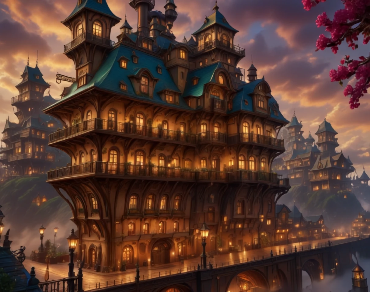 Prompts for this lora are ( SteamArch, buildings, architecture, steampunk, ).