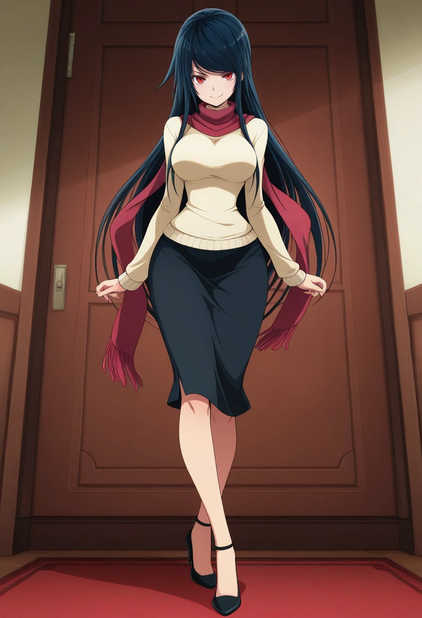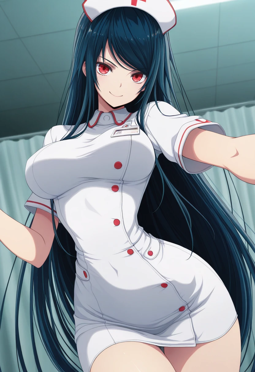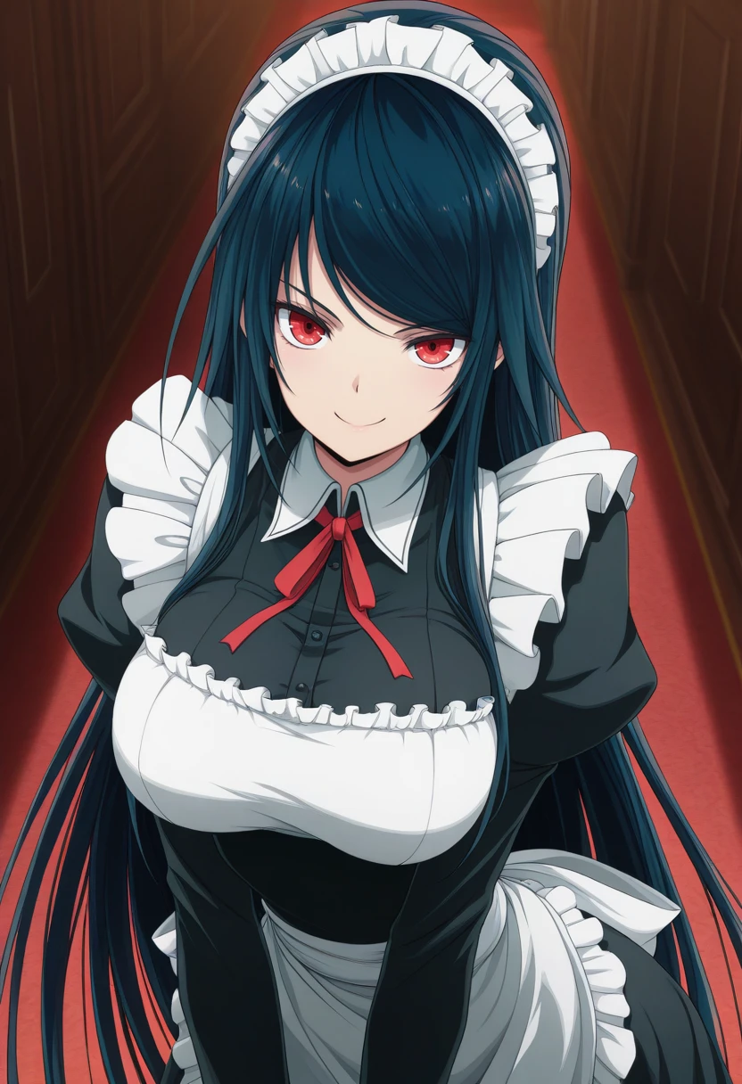 fuukib_nekoforge,red eyes,dark blue hair,long hair,straight hair,breasts,narrow waist