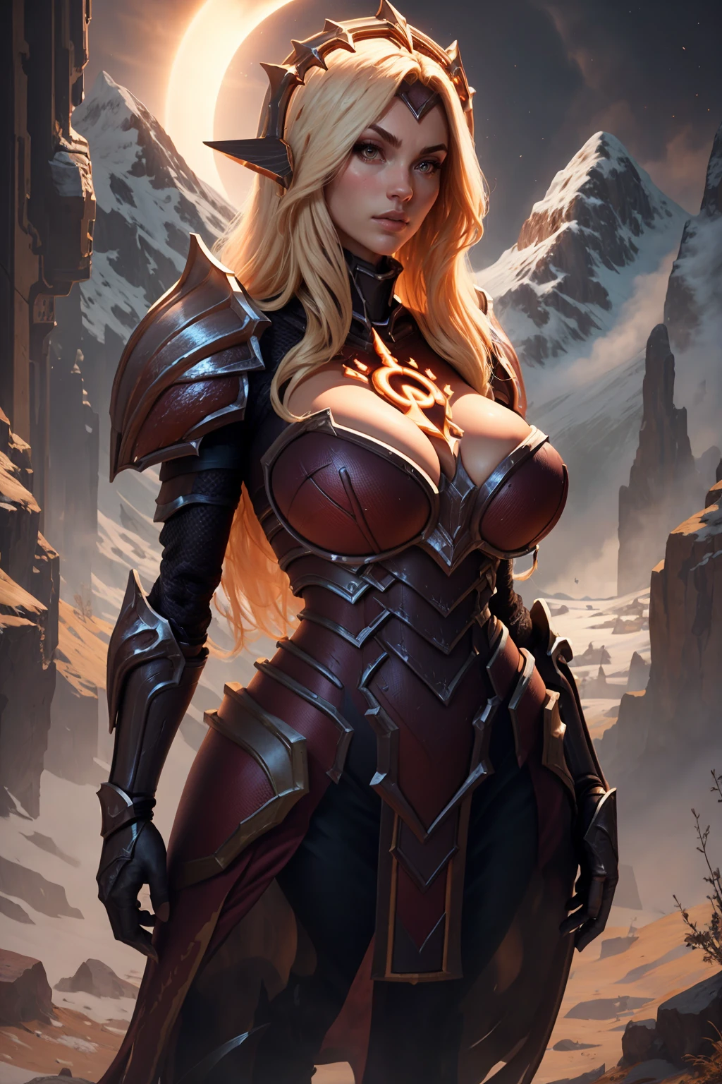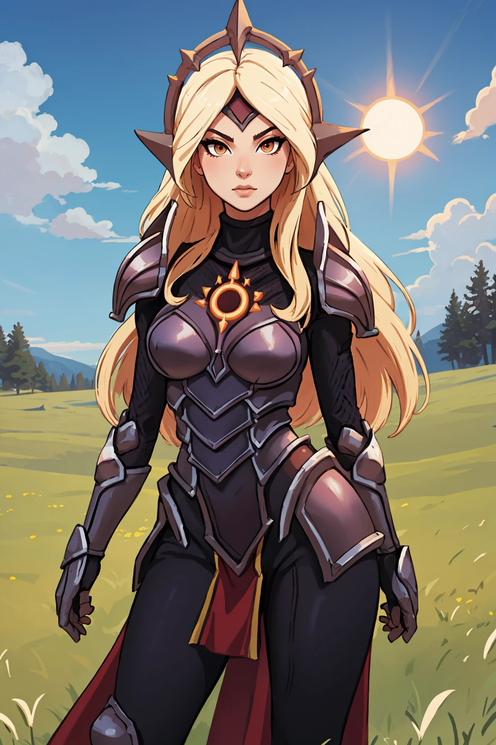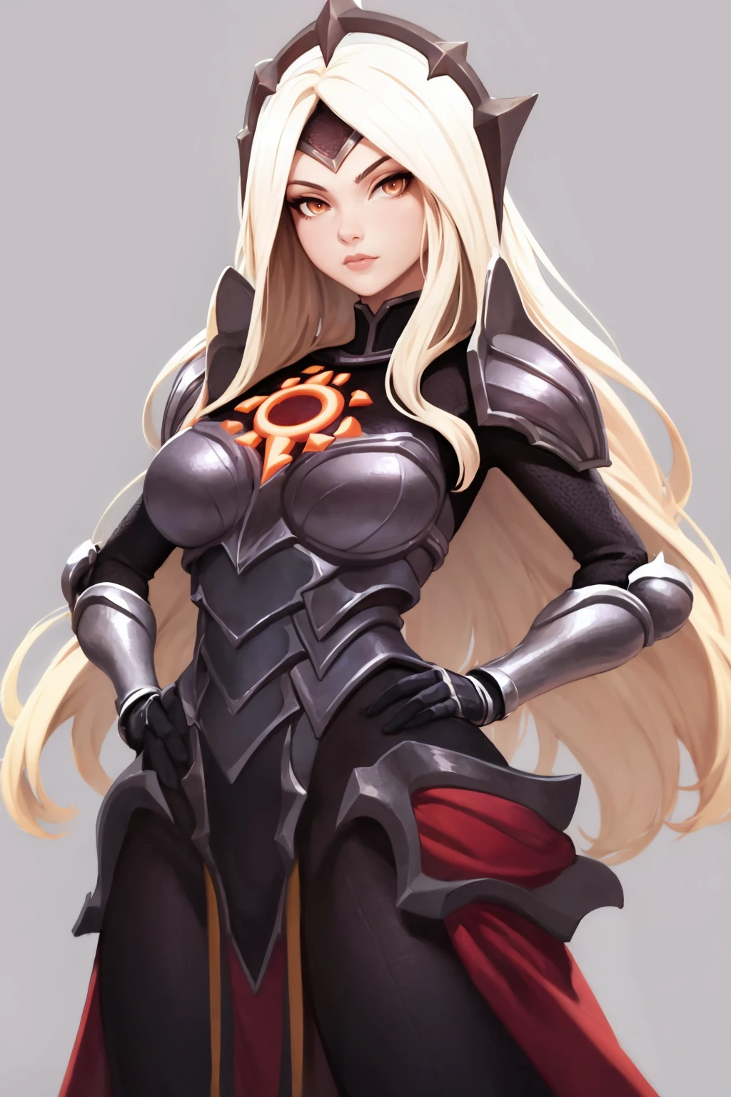 Basic prompts : 1girl, leona, blonde hair, long hair, orange eyes