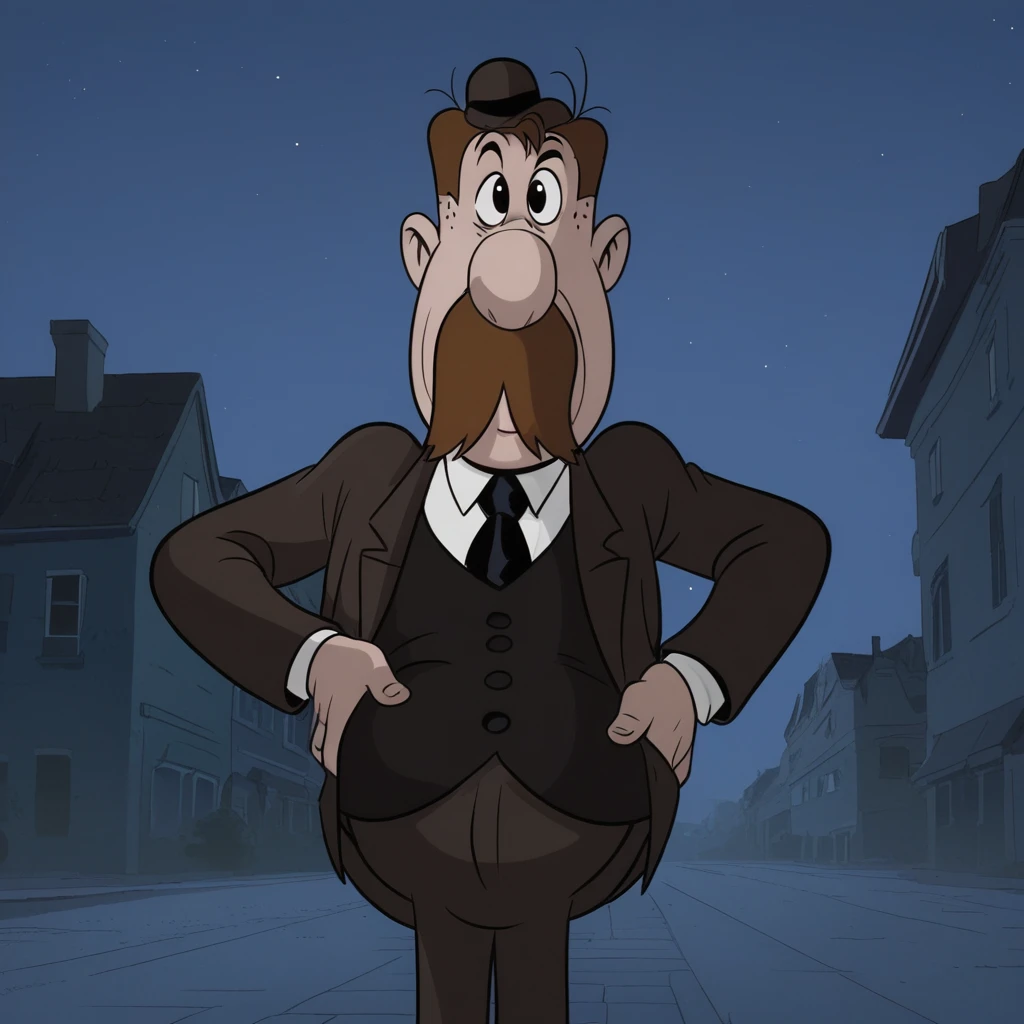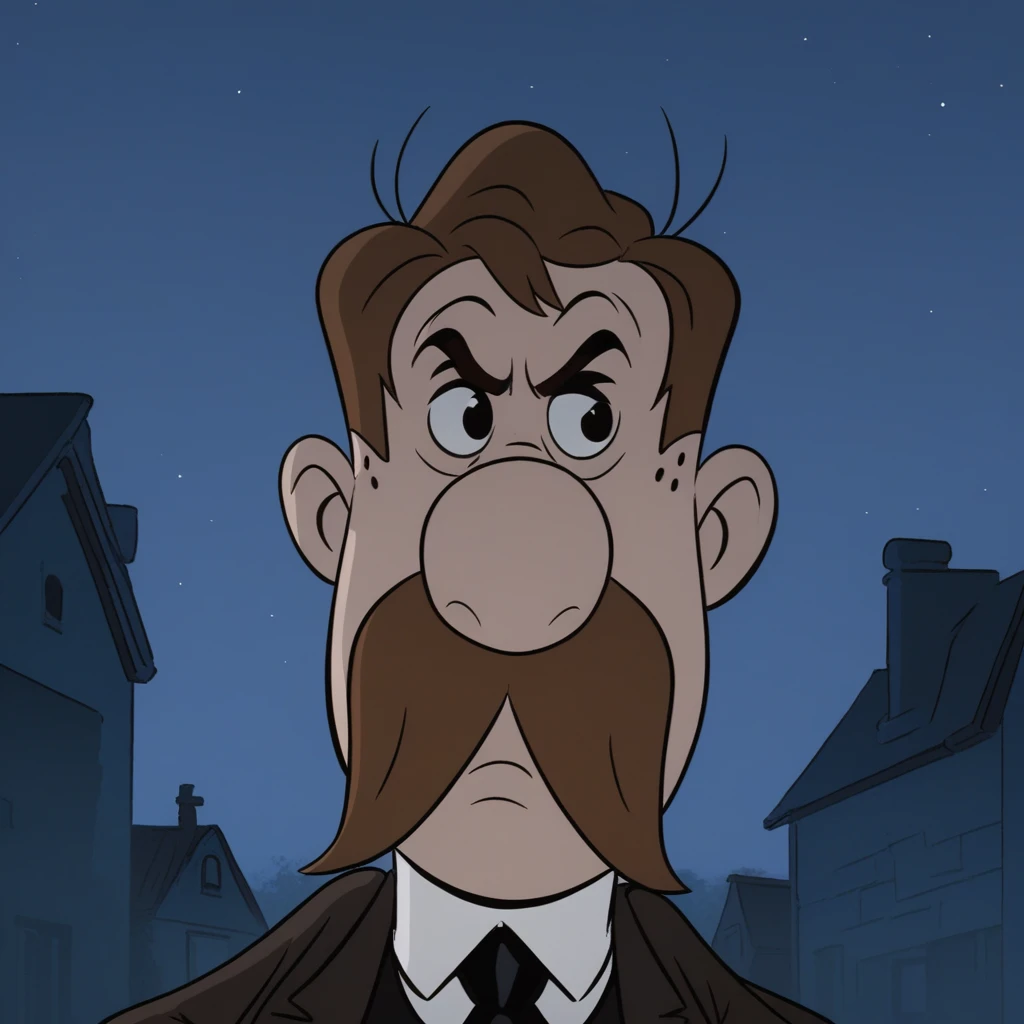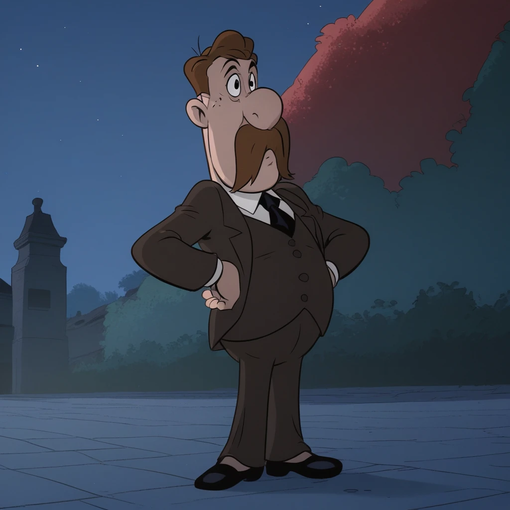 INSPECTORGENERALHASTINGS, 1boy, solo, brown hair, black eyes, mustache,