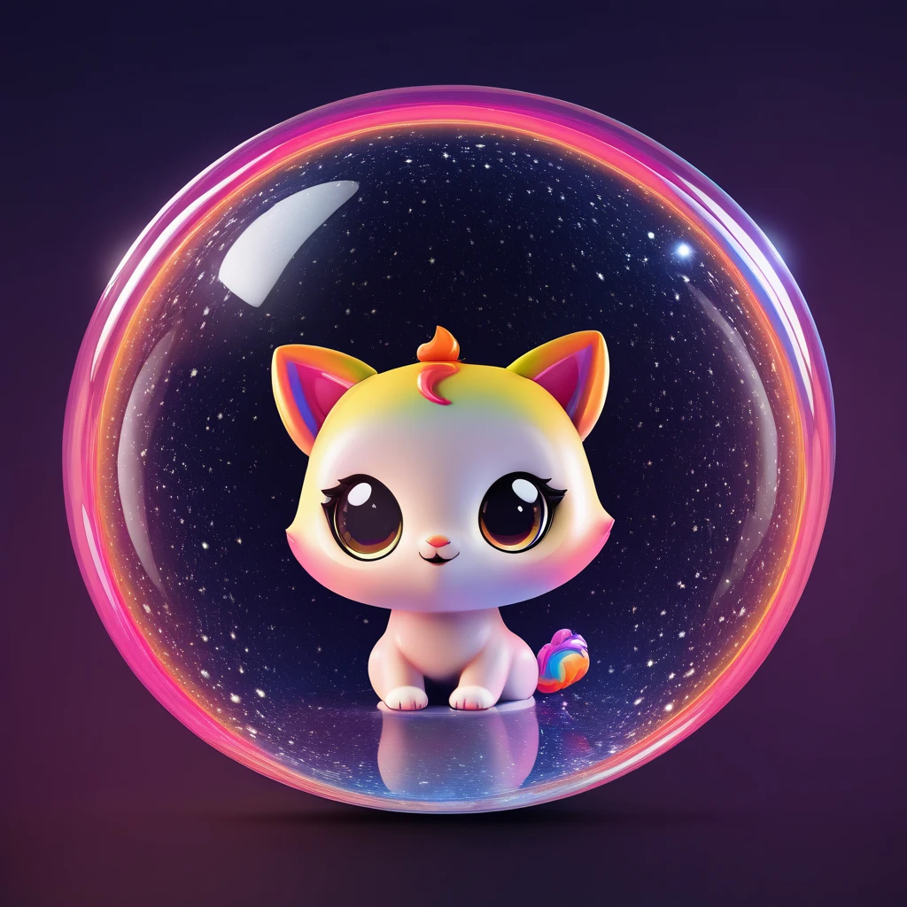one chibi avatar cute (subject here), flat 3D, colorful, inside a rainbow circle, white reflective background