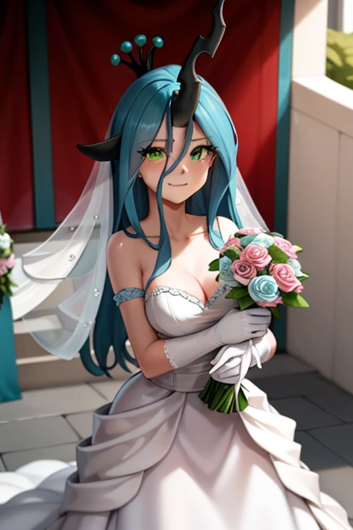 1) queen_chrysalis is the main trigger. Alone it simply creates a woman with long green hair and green eyes.