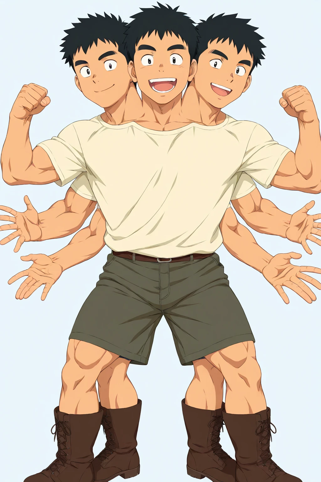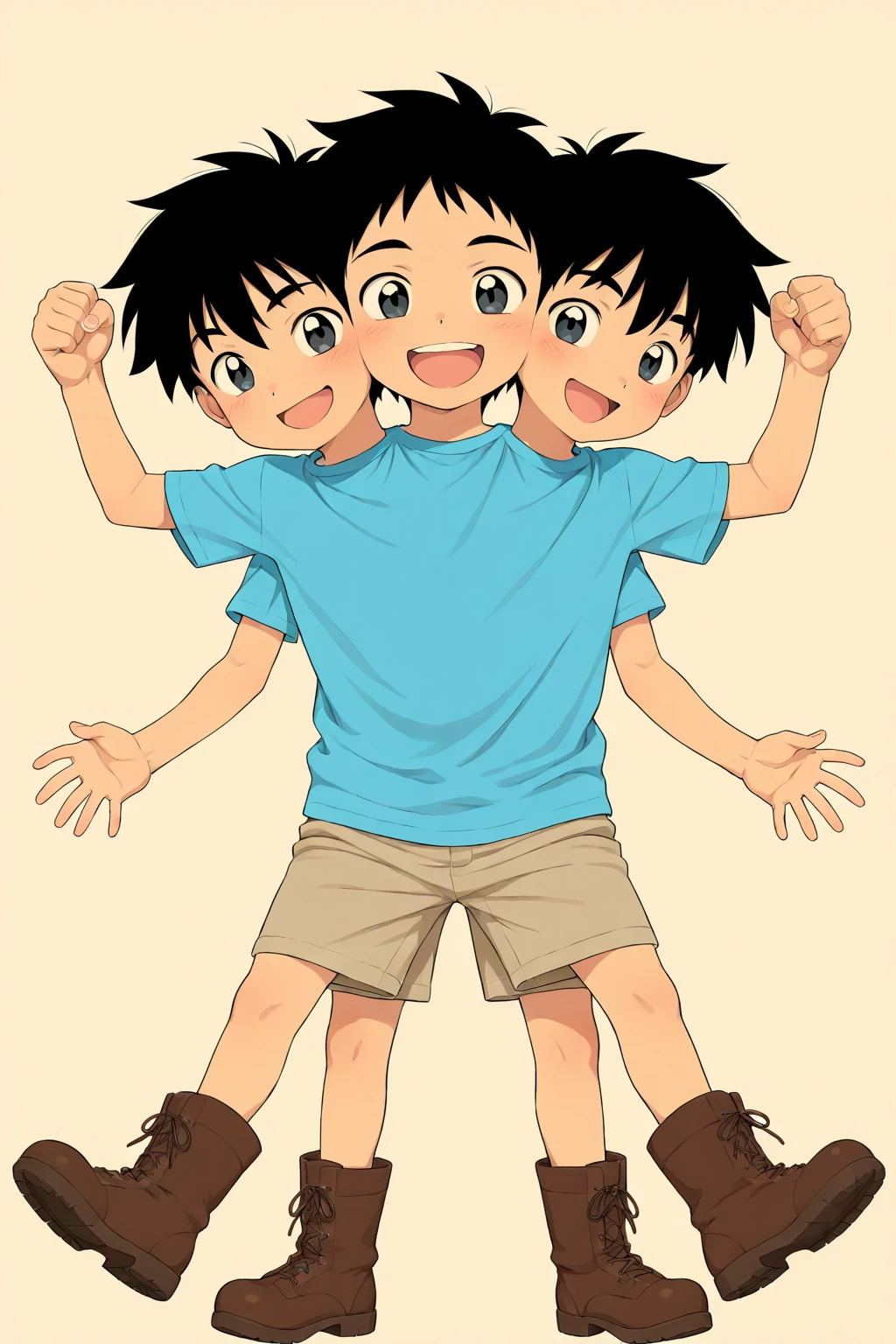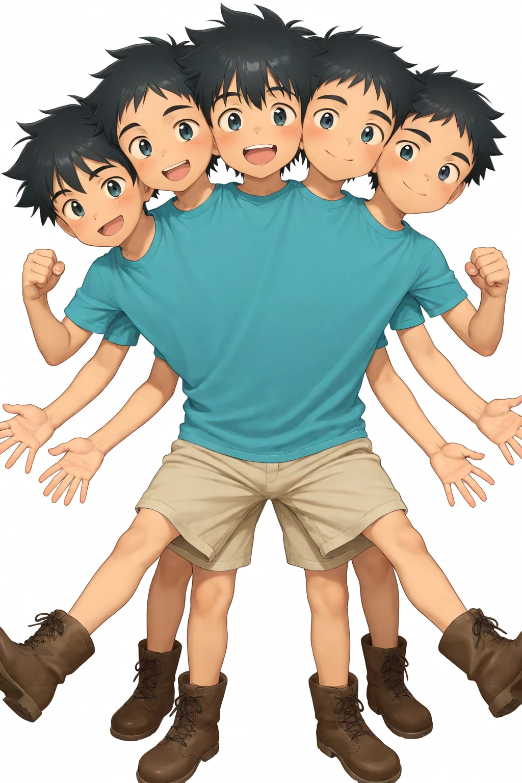 conjoined,4boys,four heads,four arms,four hands,four legs,conjoined boy,shota,cute boy,little boy,anime,anime color,