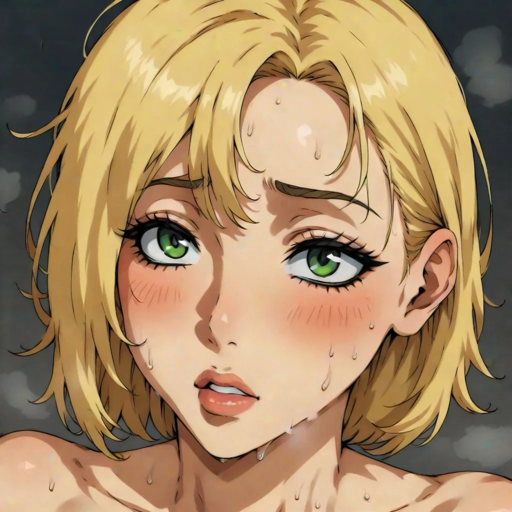 JyMrvl_Bridgette, JyMrvlBrdgtt_Face, ponytail, long eyelashes, light makeup, full lips, green eyes, blonde hair
