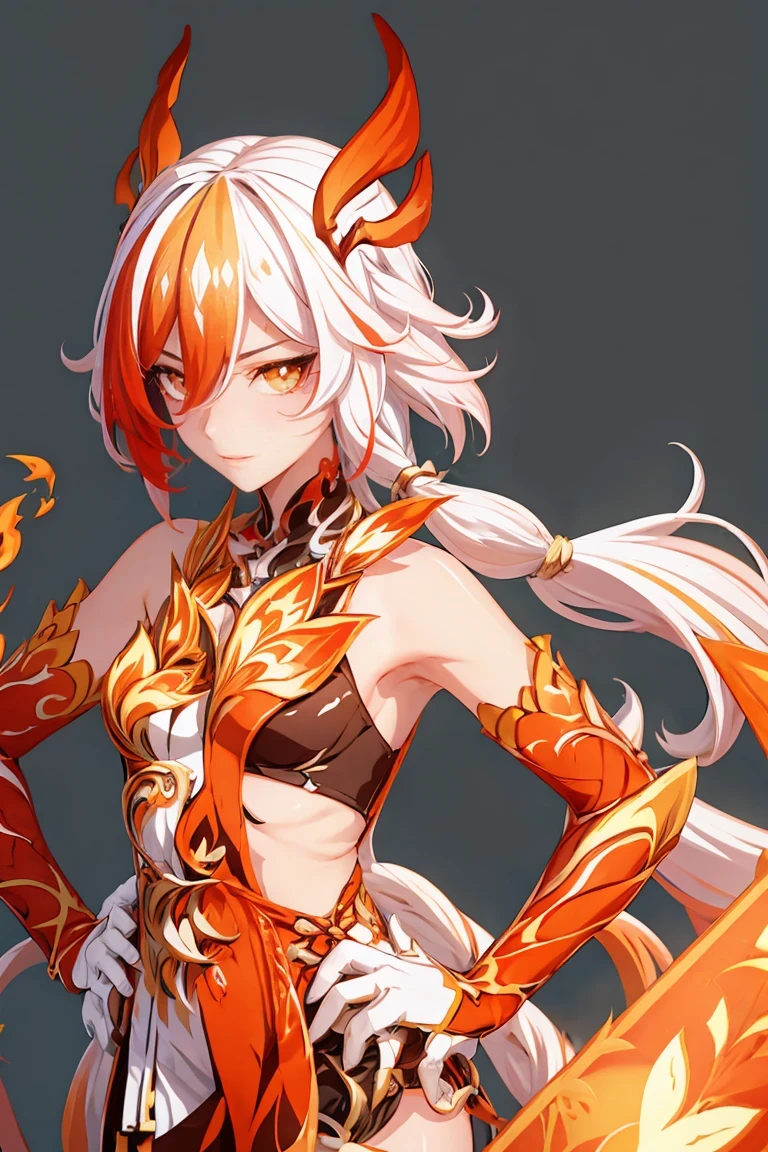 https://civitai.com/models/179865/fu-huaarmor,red legwear,thighhighs,boots,facial mark,head wings,red gloves,two-tone hair,earrings,gloves,tassel,leotard,skirt,dress,elbow gloves,twintails,bare shoulders,tattoo,phoenix,ribbon,red ribbon,bangs,white hair,orange eyes,streaked hair,fu hua,orange hair,fiery hair,hair between eyes,multicolored hair,fiery wings,jewelry,hair ornament,gloves,hair ribbon,pattern on hair,logo,yellow pupils,diamond shaped pupils,