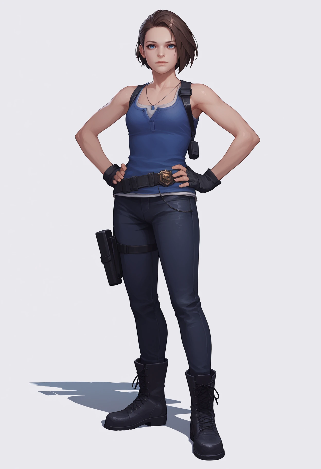 Default prompts : belt, black gloves, boots, fingerless gloves, pants, blue tank top, thigh holster