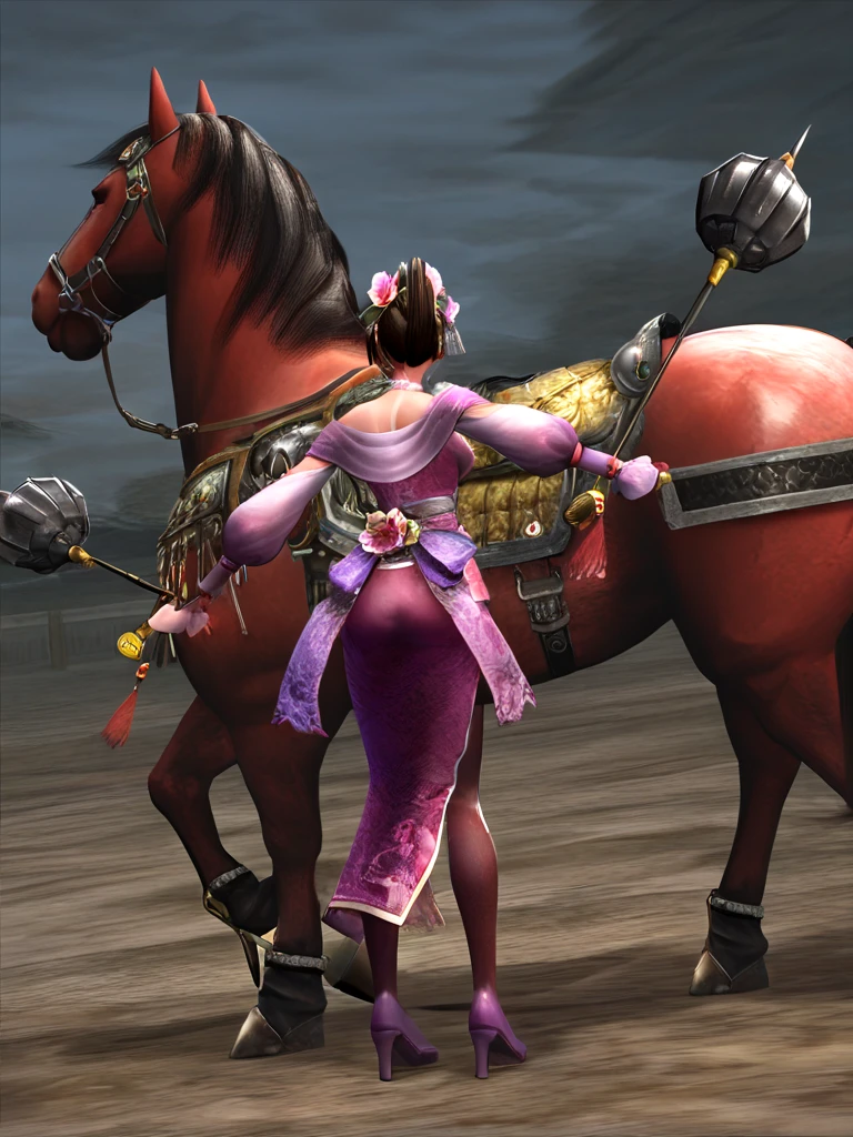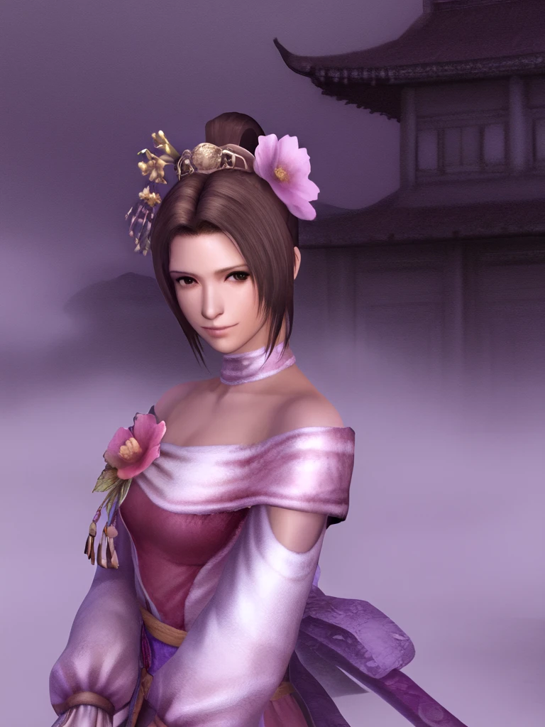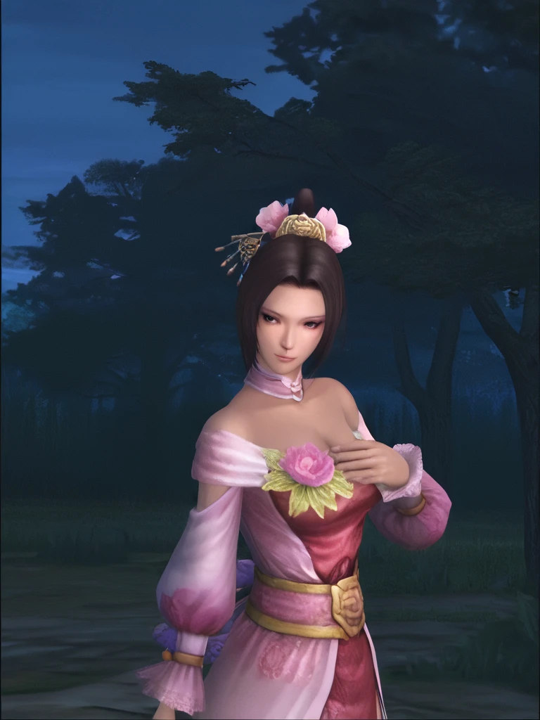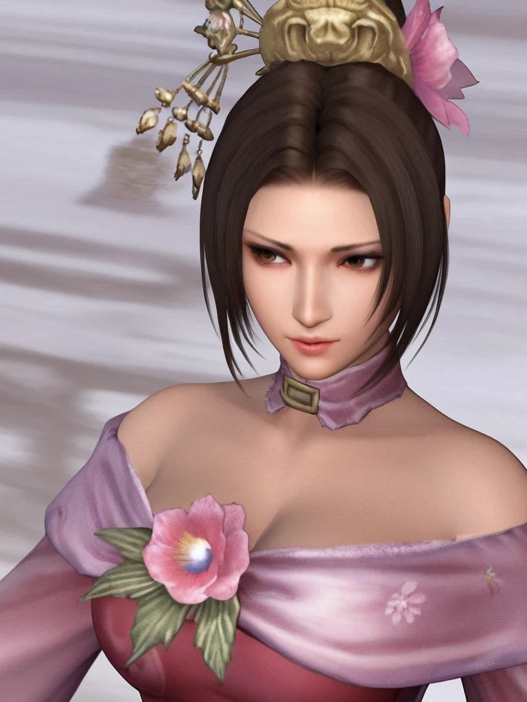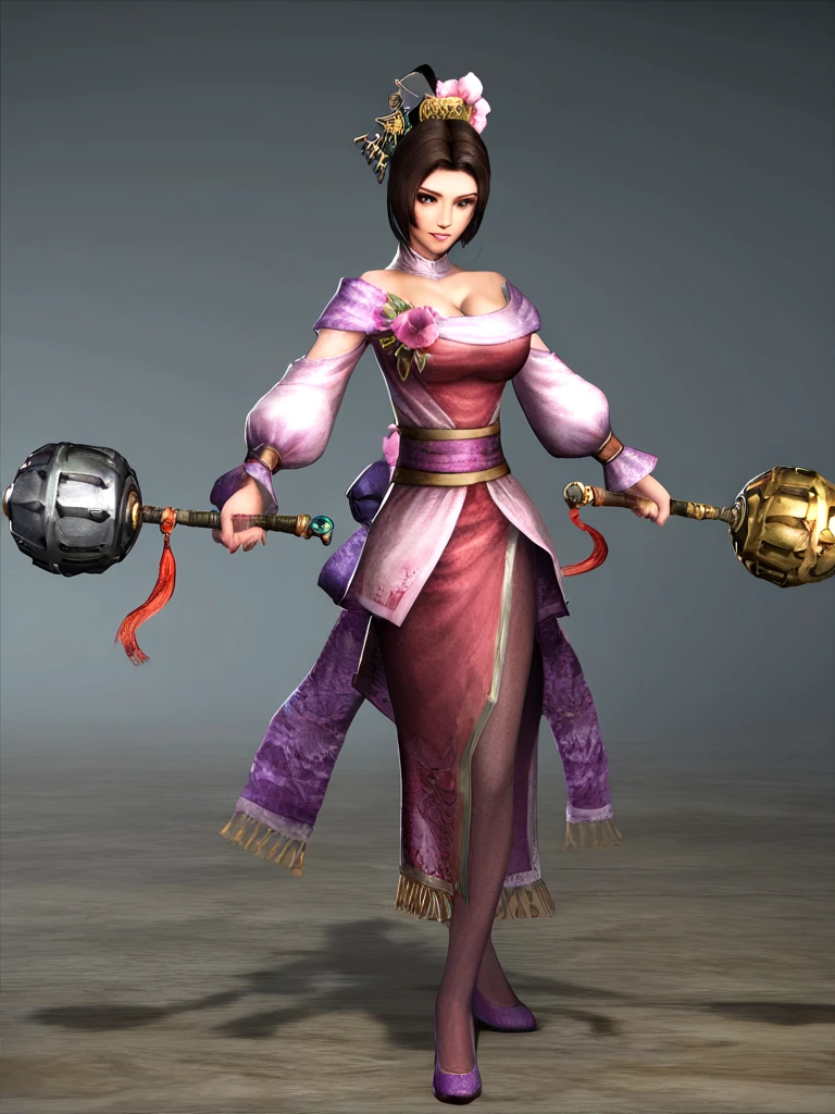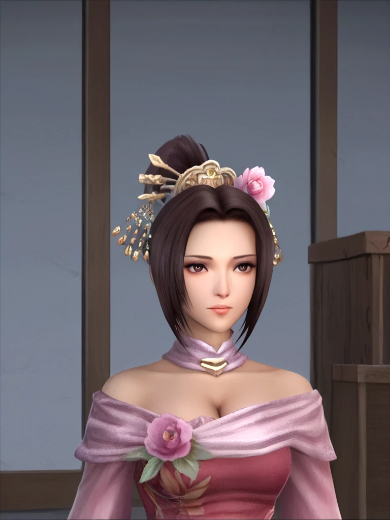 diaochan, 3d, 1girl, slim, skinny, cleavage, large breasts, pink dress, purple dress, red qipao, chinese clothes, hair ornament, hair flower,