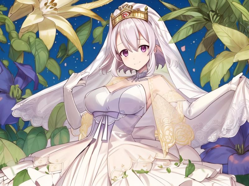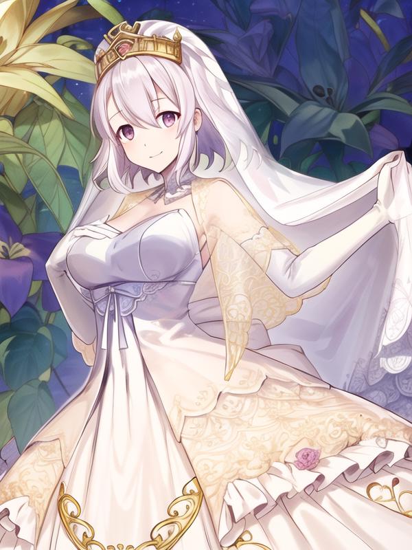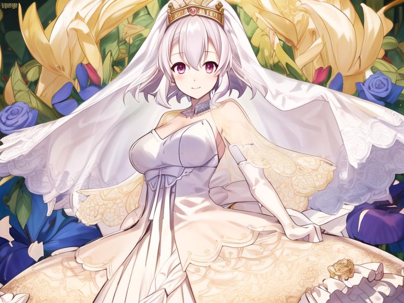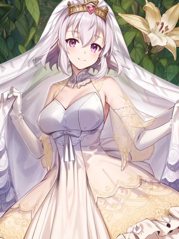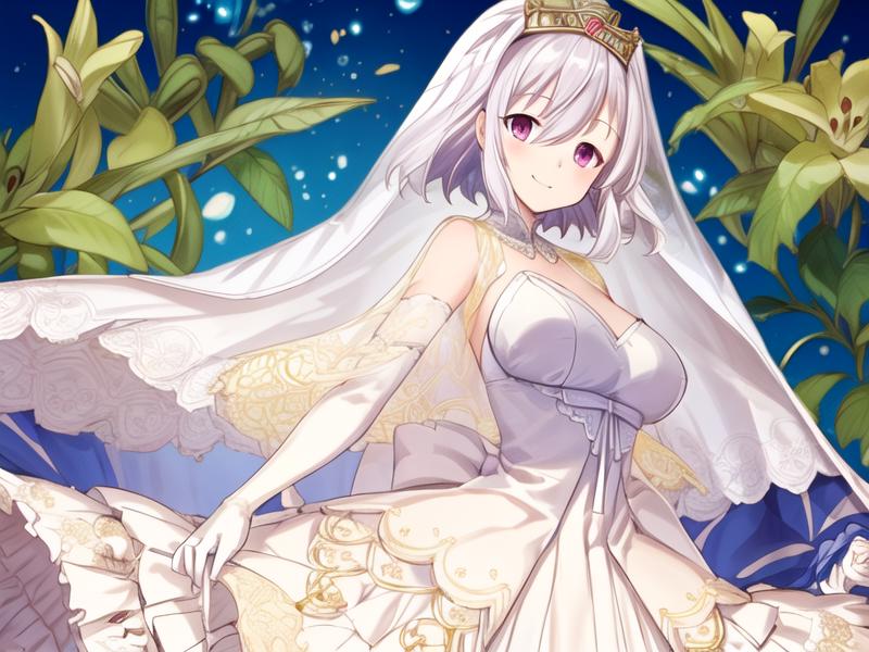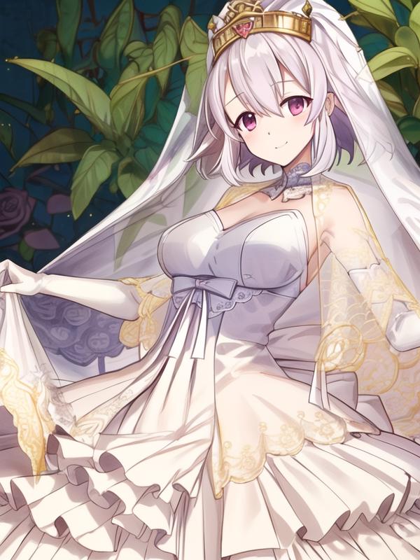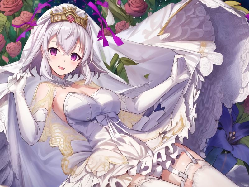 Wedding_Chateau,white dress, tiara, veil,short hair, cape,elbow gloves,white stocking,garter straps, frilled dress, wedding, long skirt, frilled skirt,