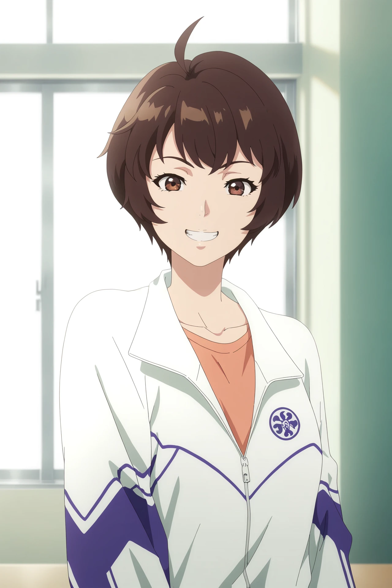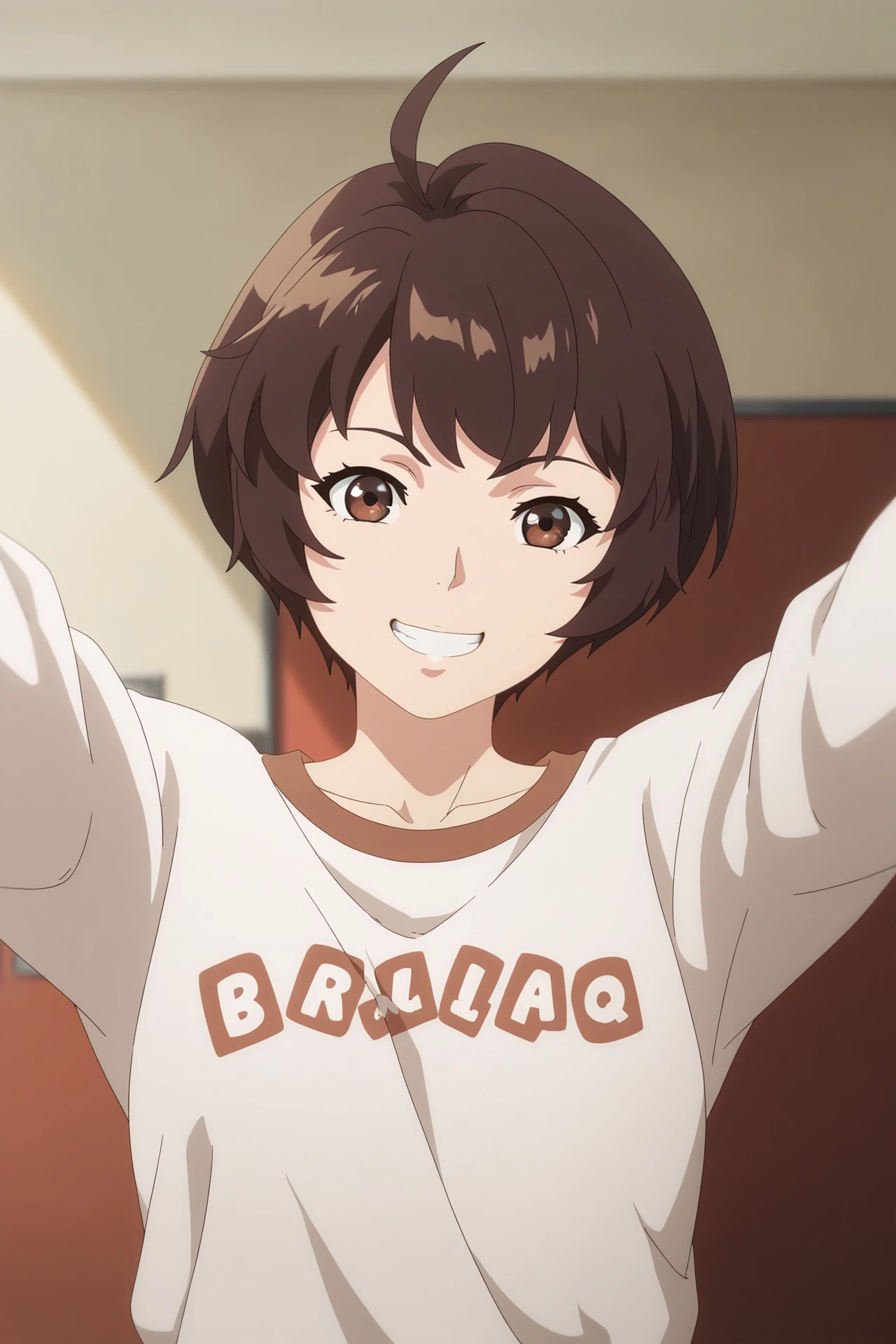 GuLiaoLiao,1girl,solo,brown hair,short hair,brown eyes,ahoge