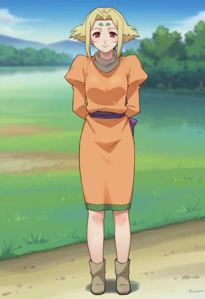 pink tunic,orange sash,white pants,orange gloves,orange boots,