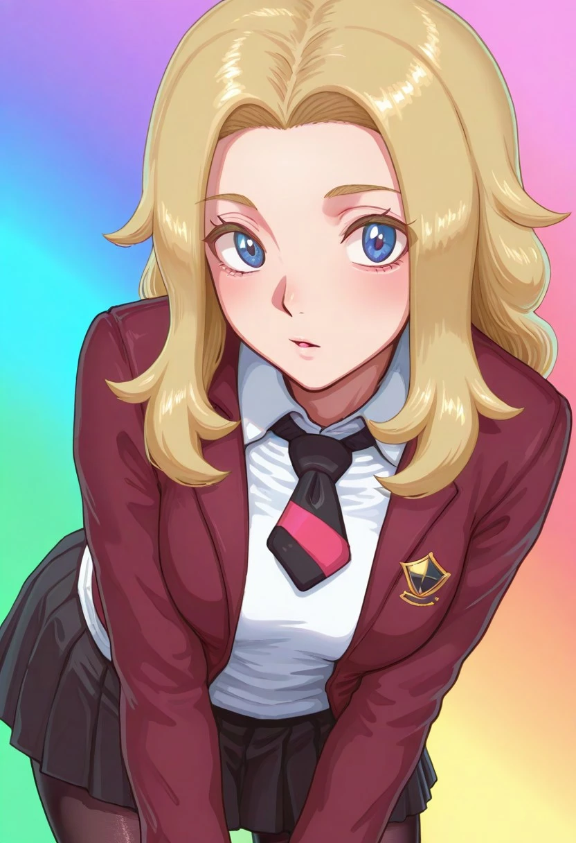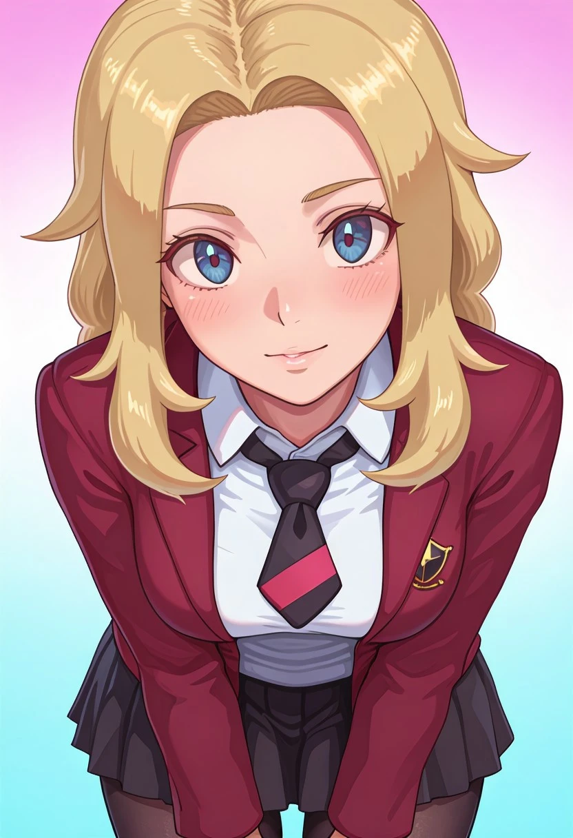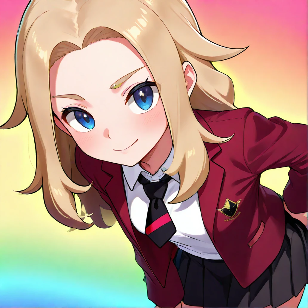 swshlass, lass \(pokemon swsh\), long hair, blonde hair, sidelocks, blue eyes, aged up