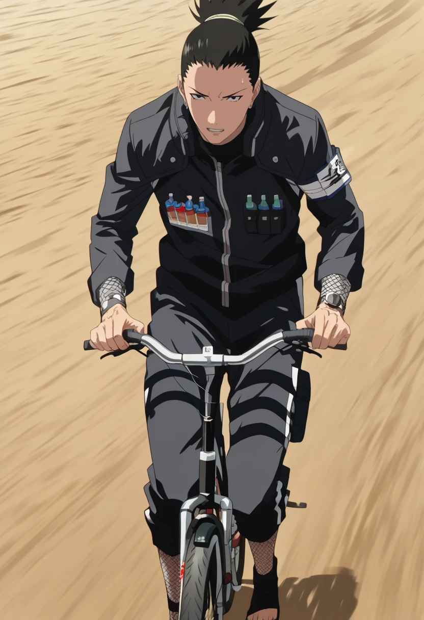 According to the model you use Shikamaru might get different clothes, so to get his regular Ninja outfit with the green vest i suggest the prompt:
