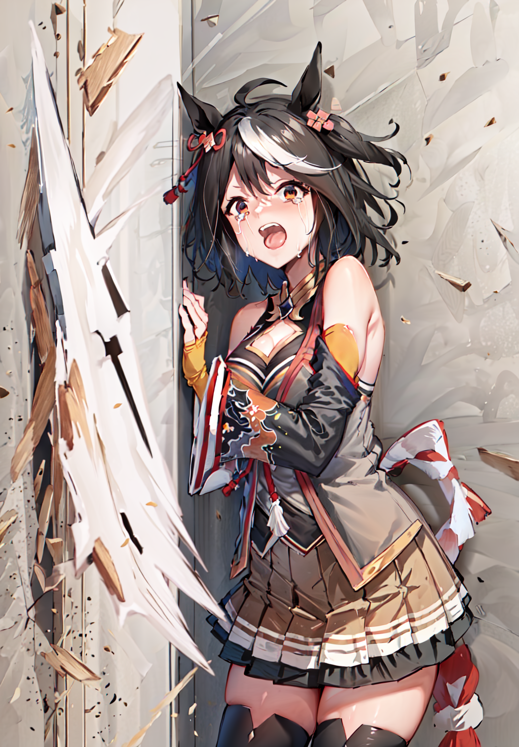 1girl, solo, horse girl, horse tail, horse ears, animal ears, tail through clothes,