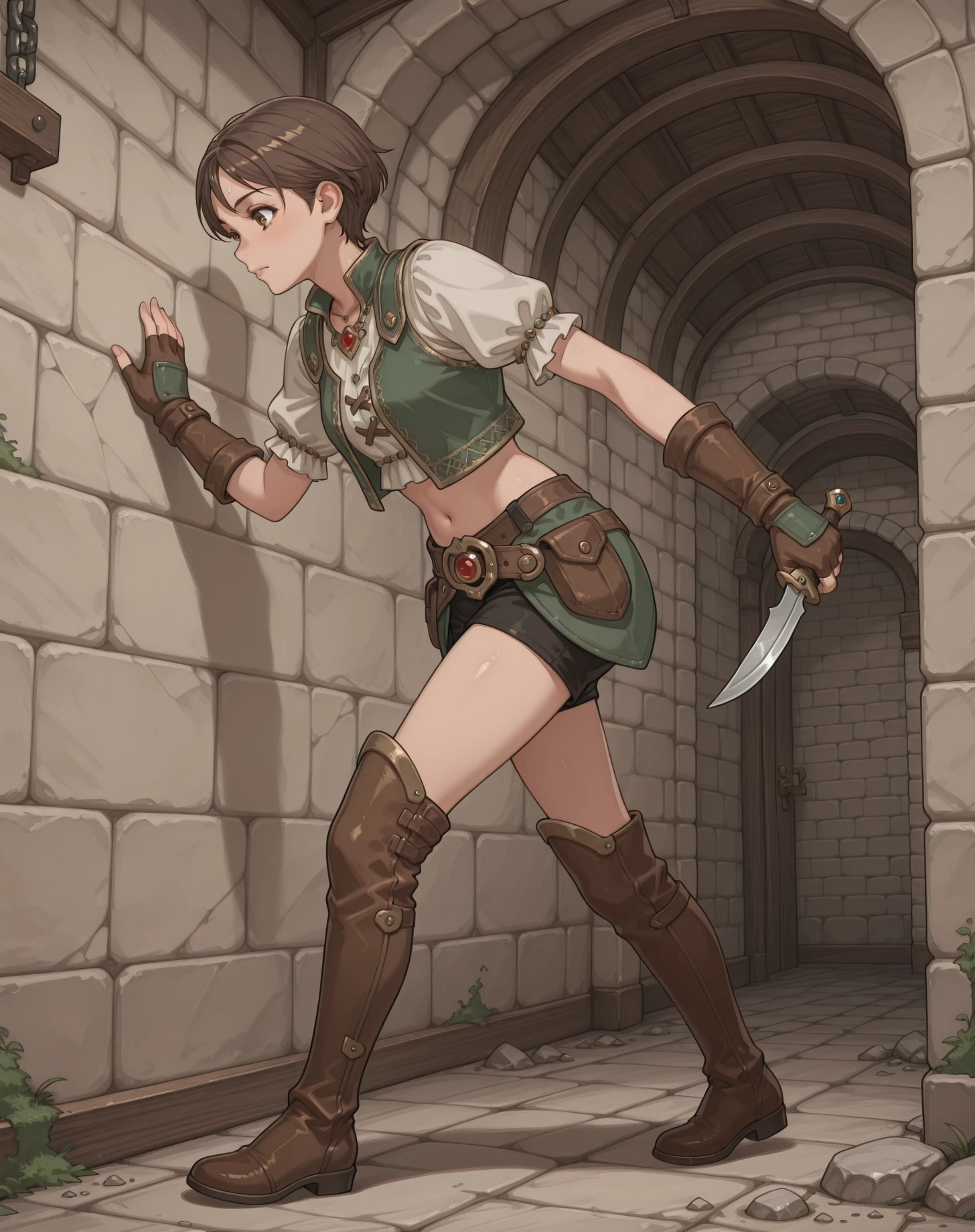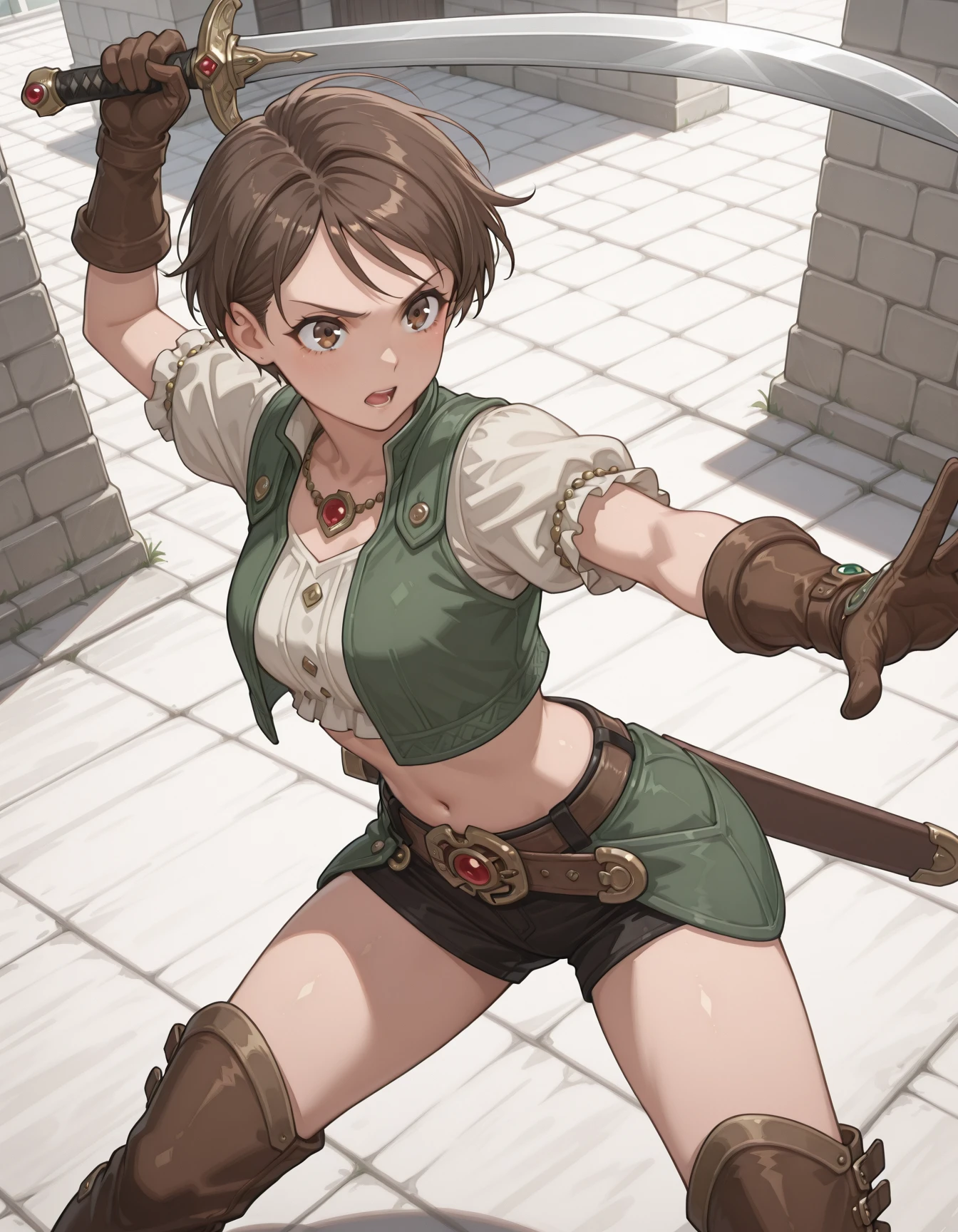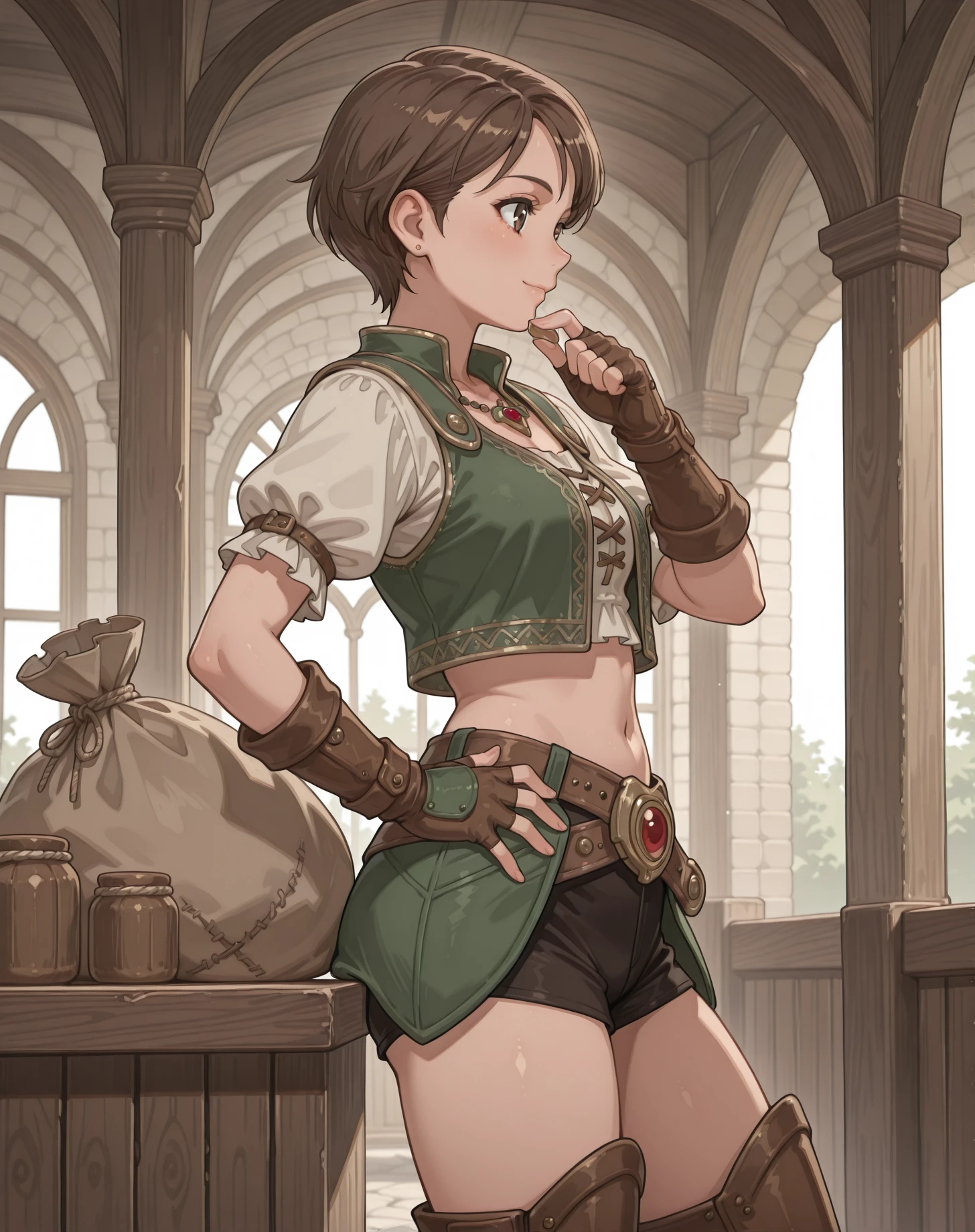 black short shorts, 1girl, ,blush, brown eyes, , jewelry,