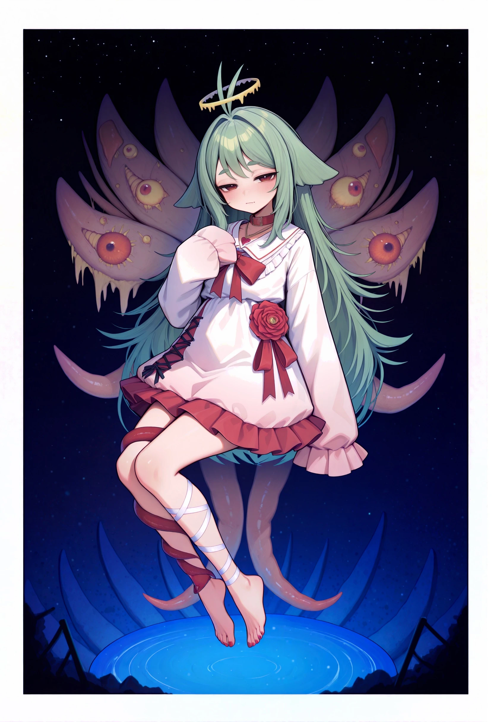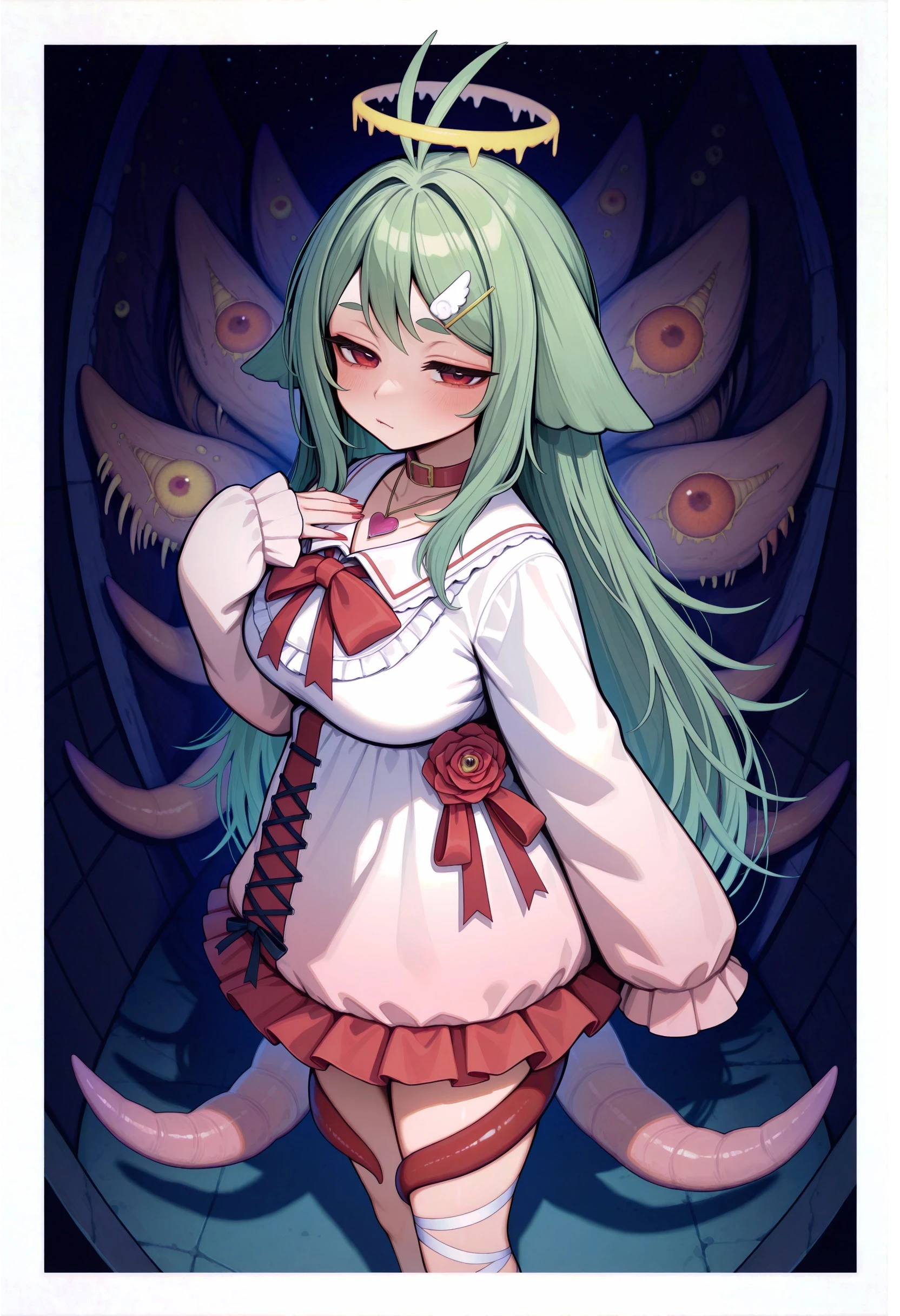 eldritch abomination, tentacles, antenna hair, halo,