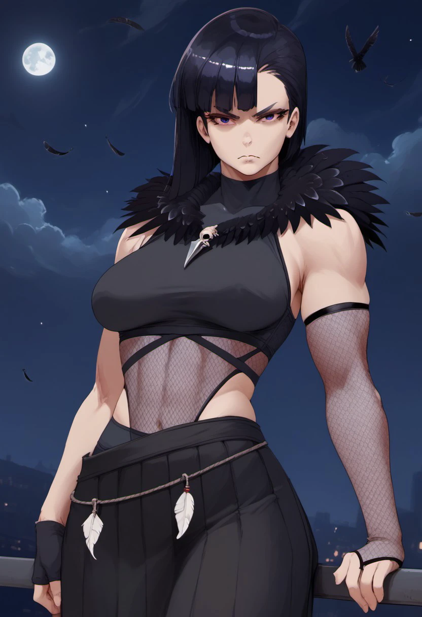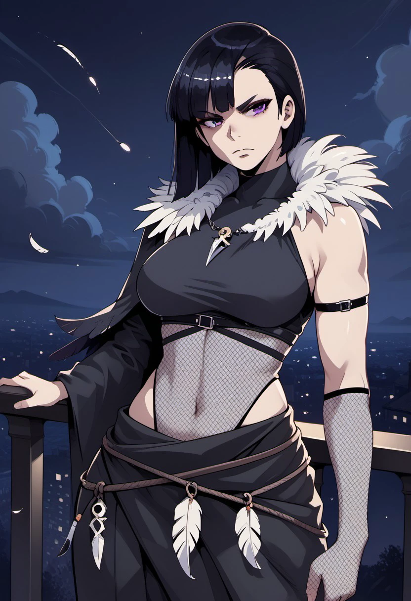 CorvinaXL, black hair, bangs, short hair, purple eyes, large breasts