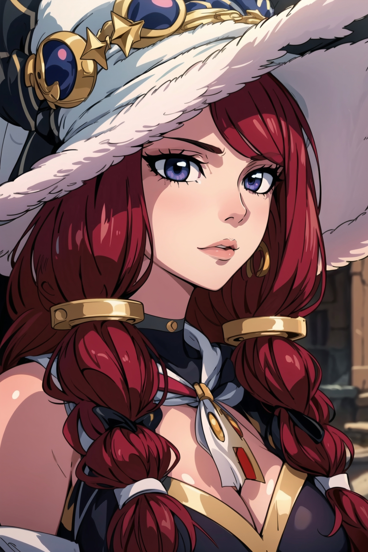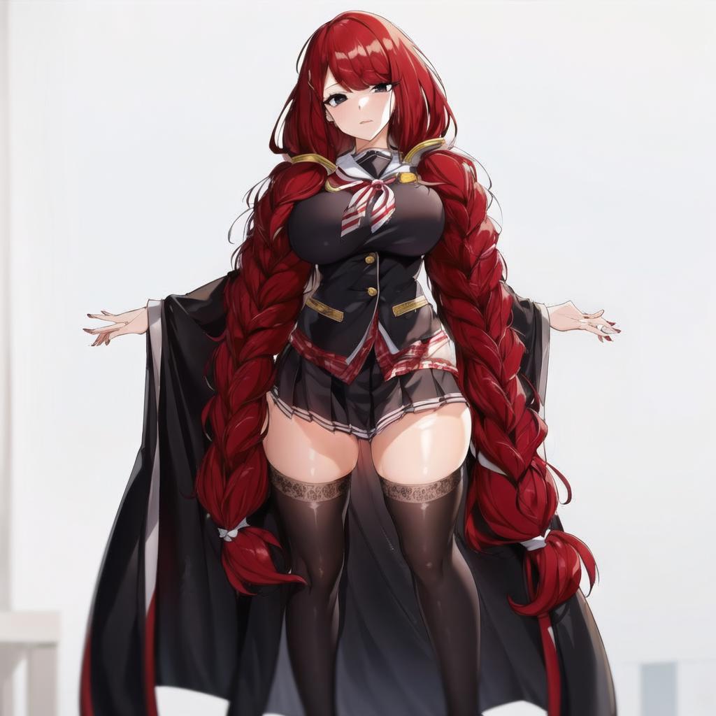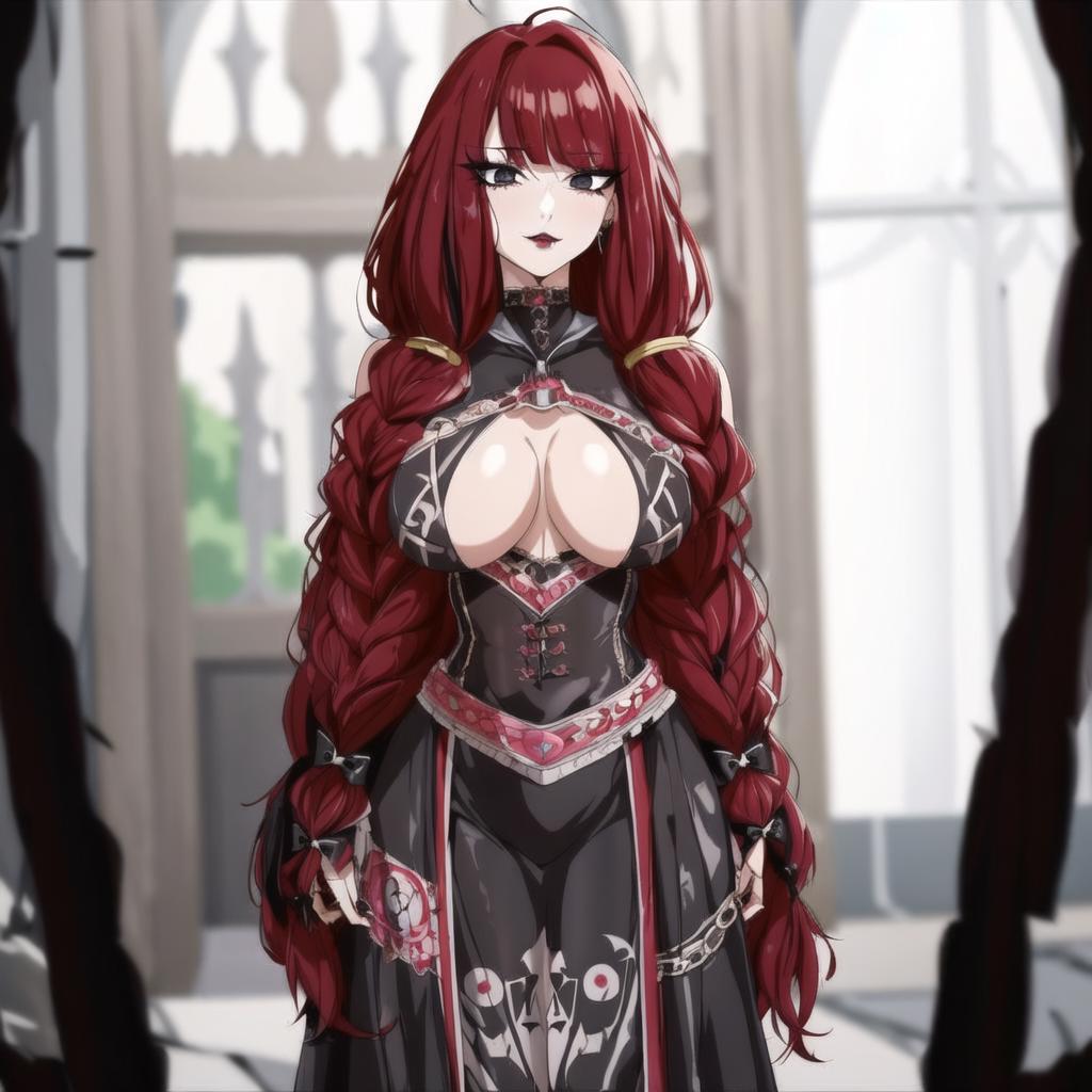 <lora:IreneV2:0.8>,solo, irene, breasts, red hair, underboob, hat, long hair, witch hat, 1girl, braid, large breasts, twin braids, gloves, elbow gloves, black eyes, looking at viewer,(full body),