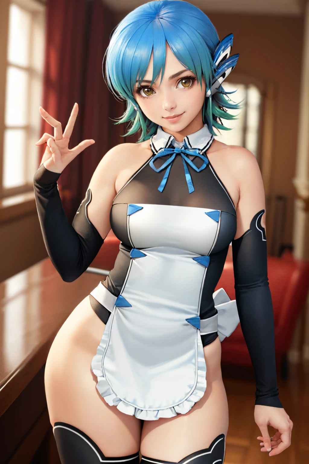 Default Outfit: waitress, apron, detached sleeves, thighhighs
