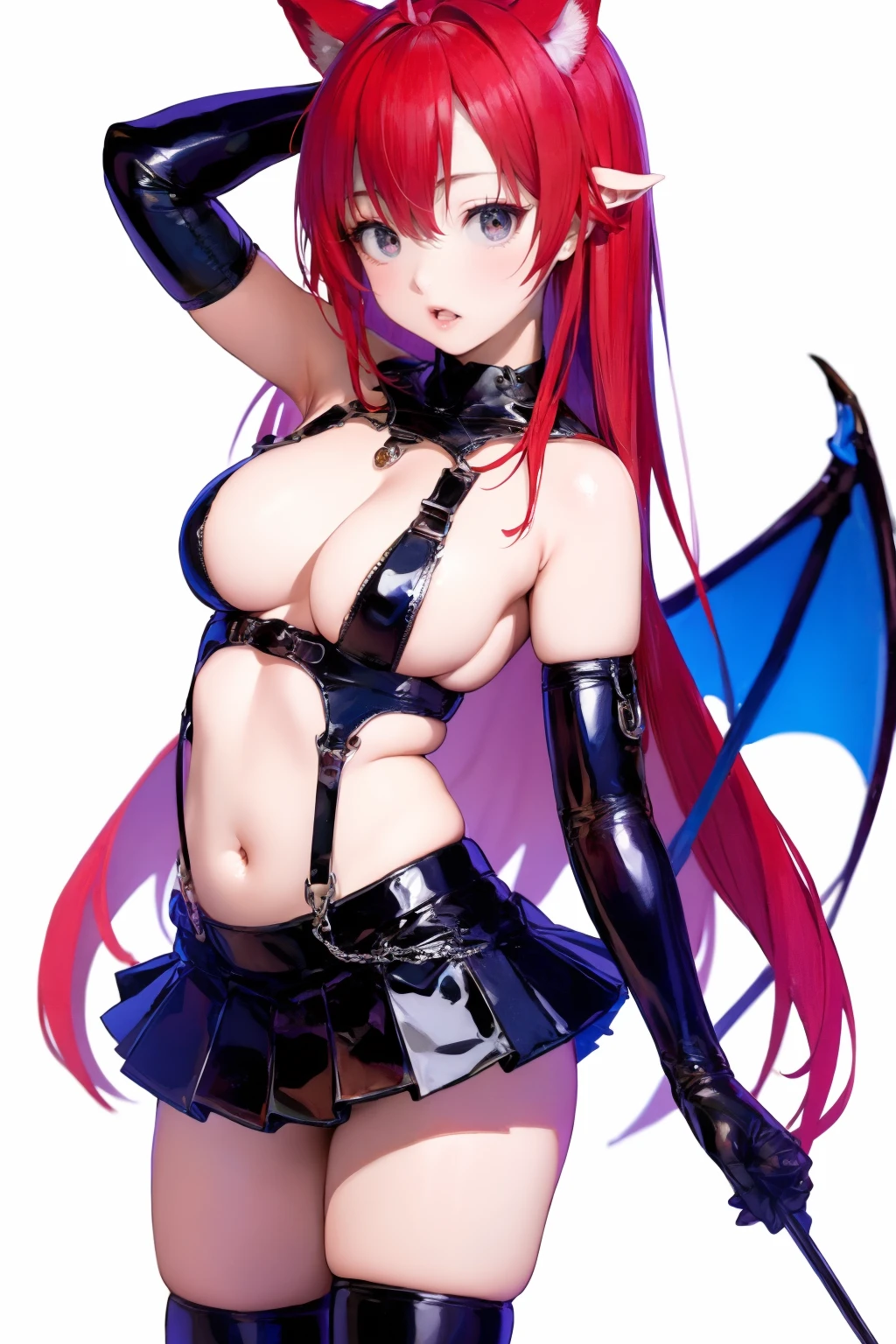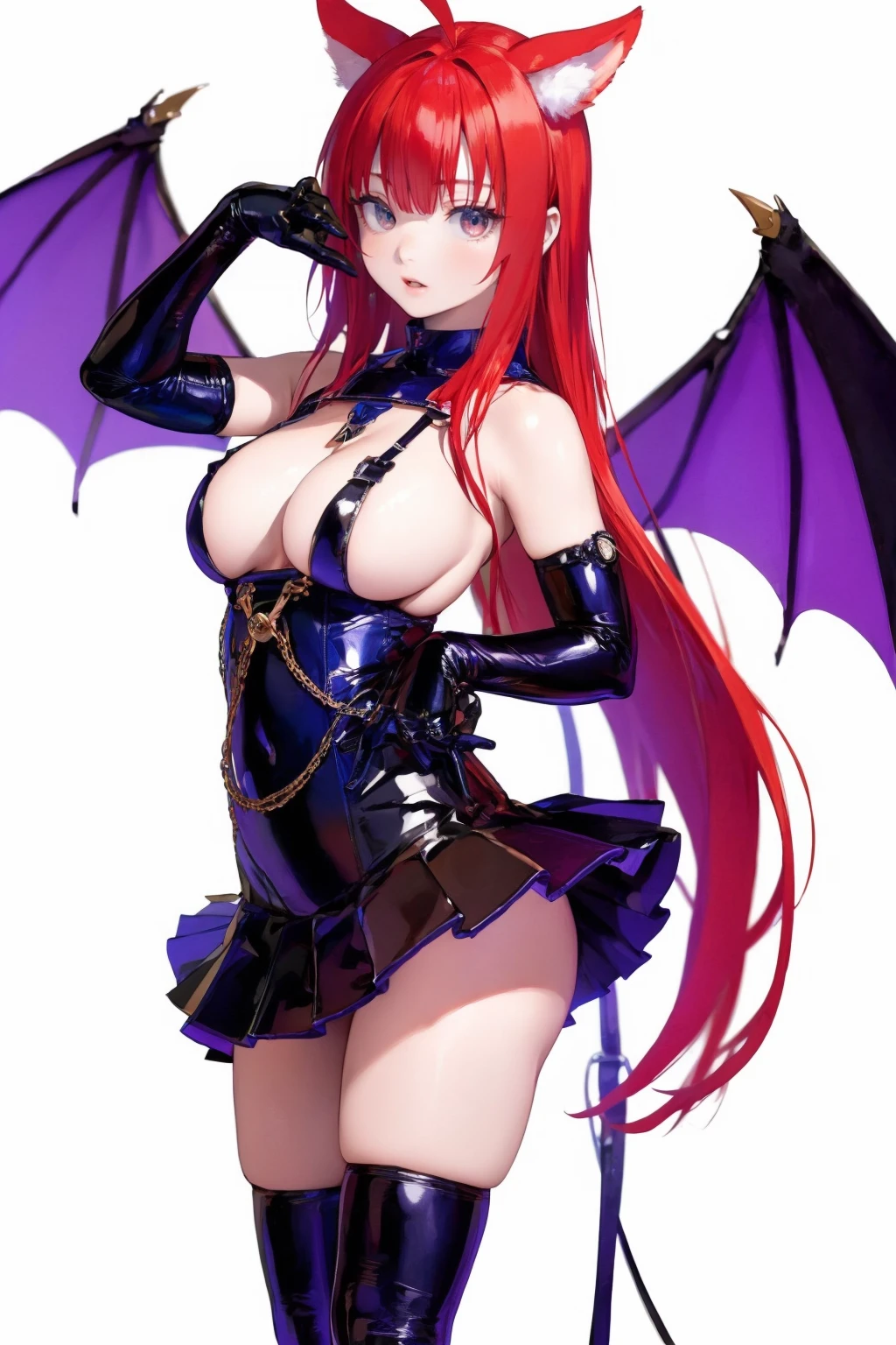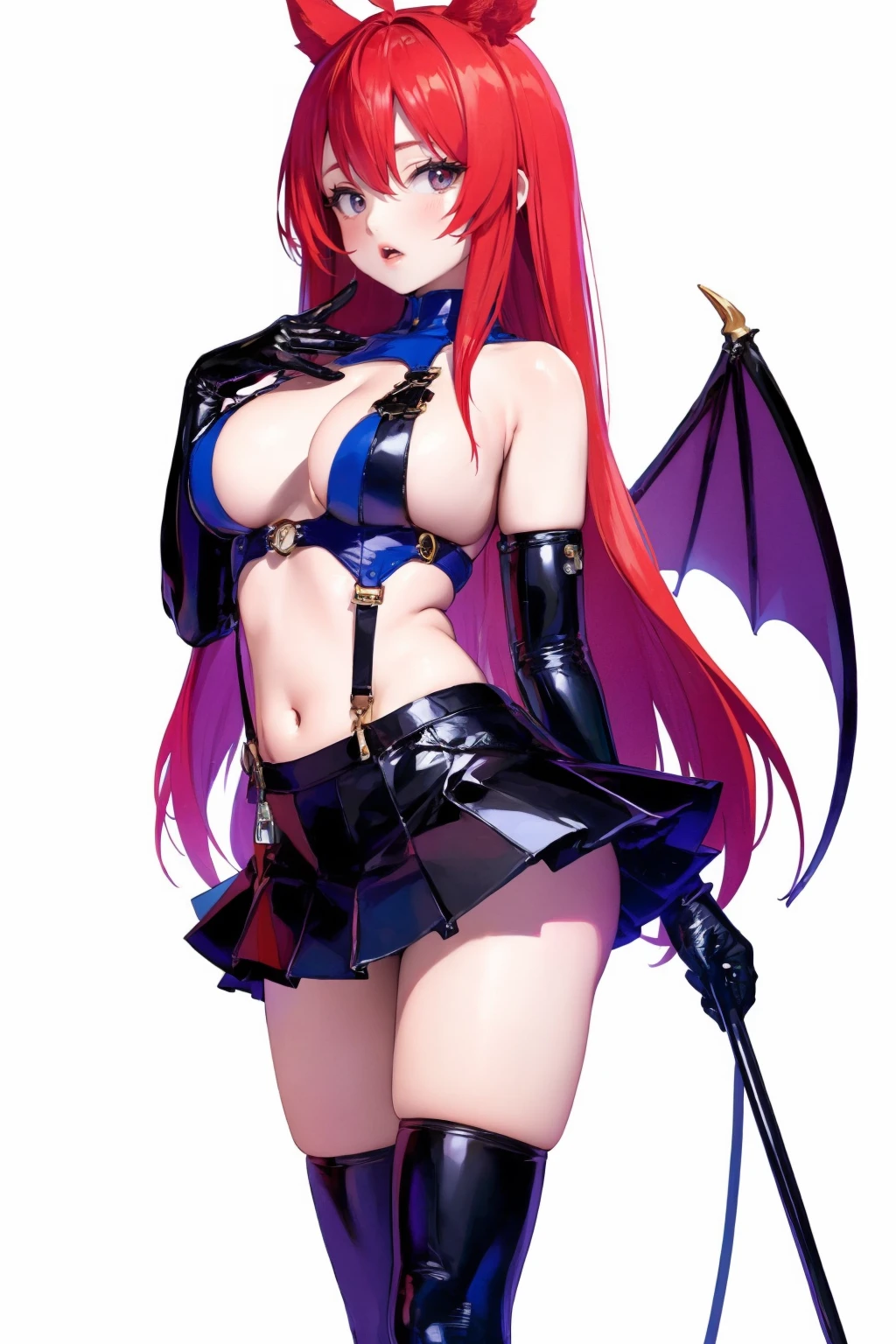 触发词(Trigger word):1girl,solo,breasts,gloves,elbow gloves,thighhighs,skirt,boots,wings,thigh boots,high heels,latex,black skirt,bondage outfit,demon girl,demon wings,miniskirt,