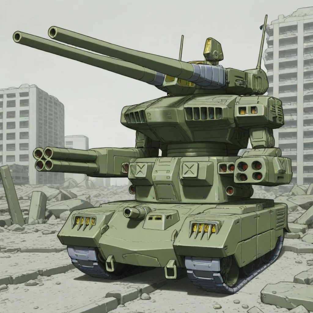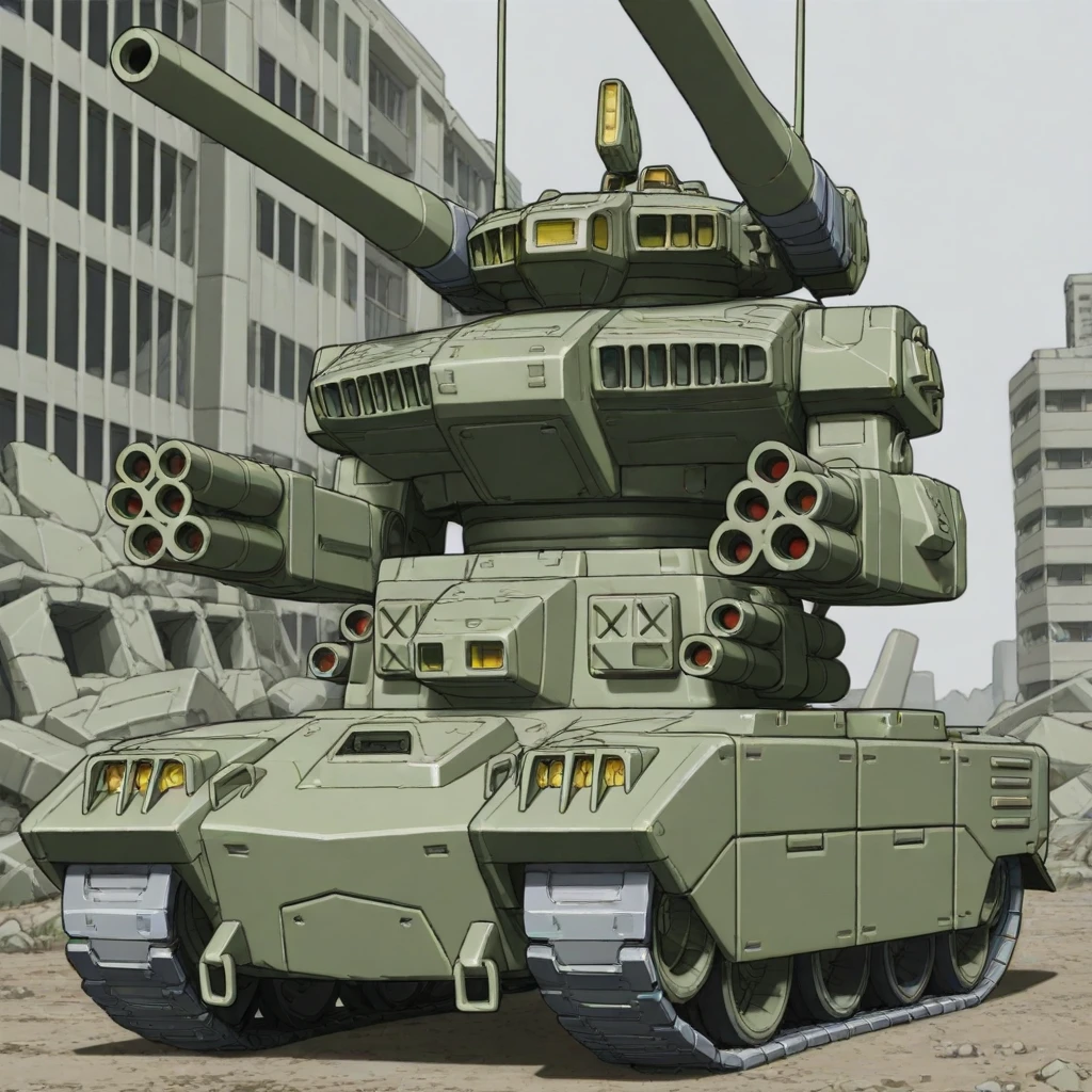 RMV-1_GUNTANK2, (lower_body is ground vehicle:1.4), head with twin cannons, arm missile launcher, arm quad gun barrel