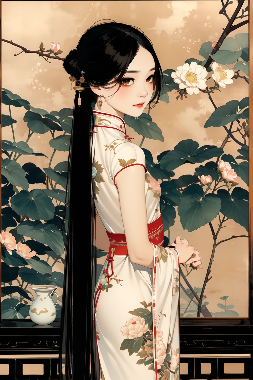 推荐prompt: master piece, high quality,a beautiful Chinese girl, black long hair, wearing cheongsam, Retro Pictorial