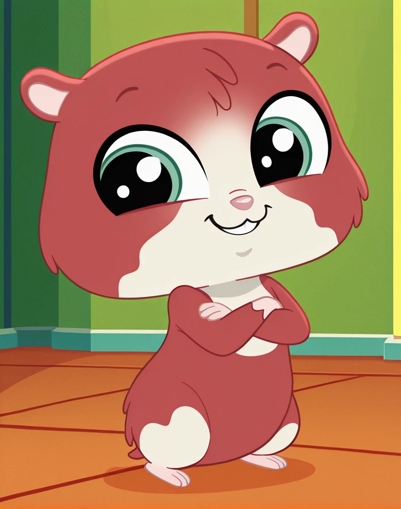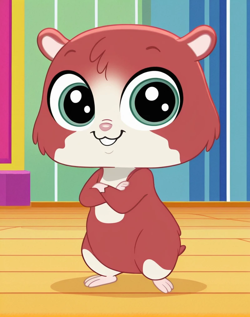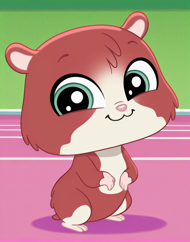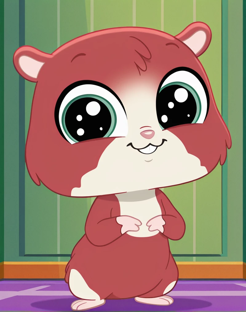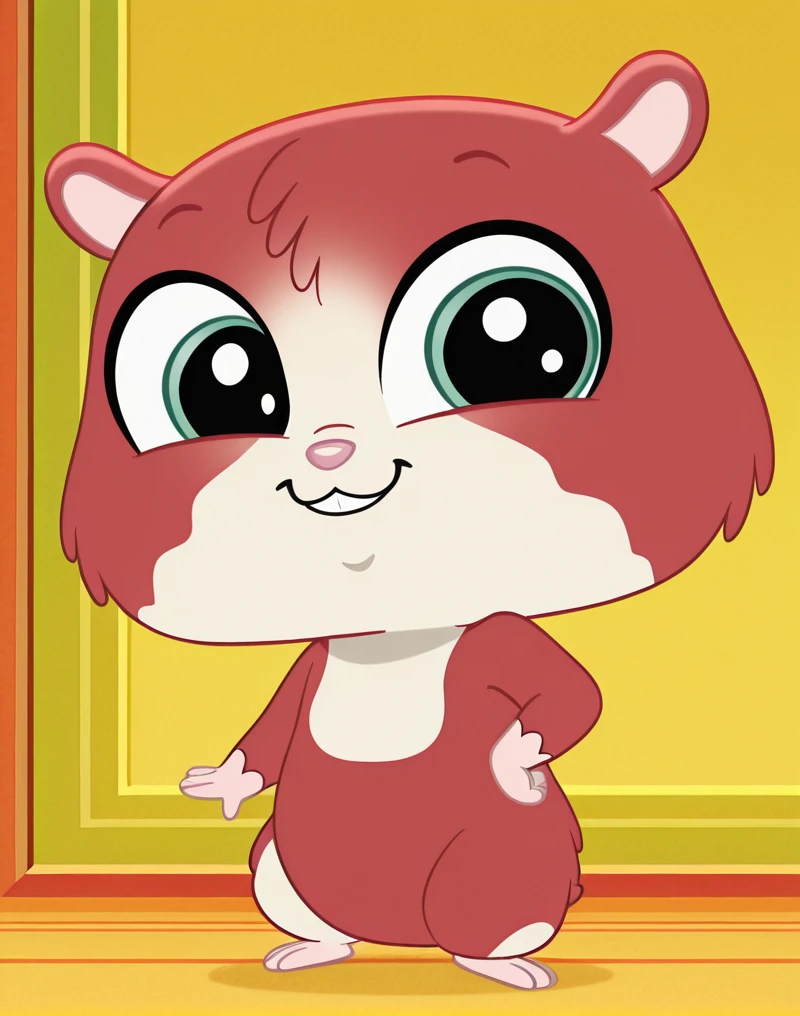 TripHamston, hamster, hamster ears, hamster tail, pink nose, green eyes, big eyes, semi-anthro, red and white fur, furry male, two-tone fur