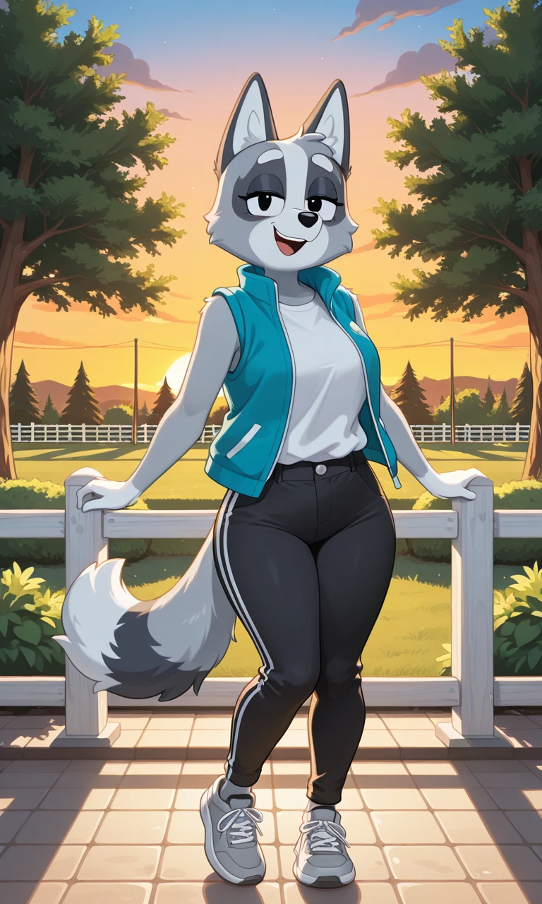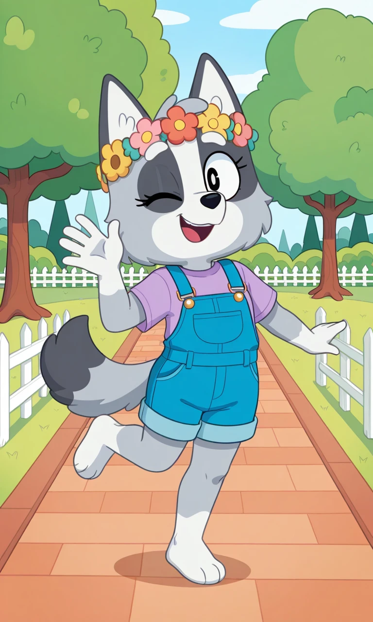 Muffin_Heeler_(Bluey series), black-gray fur, Two-tone fur, anthro dog, fluffy tail