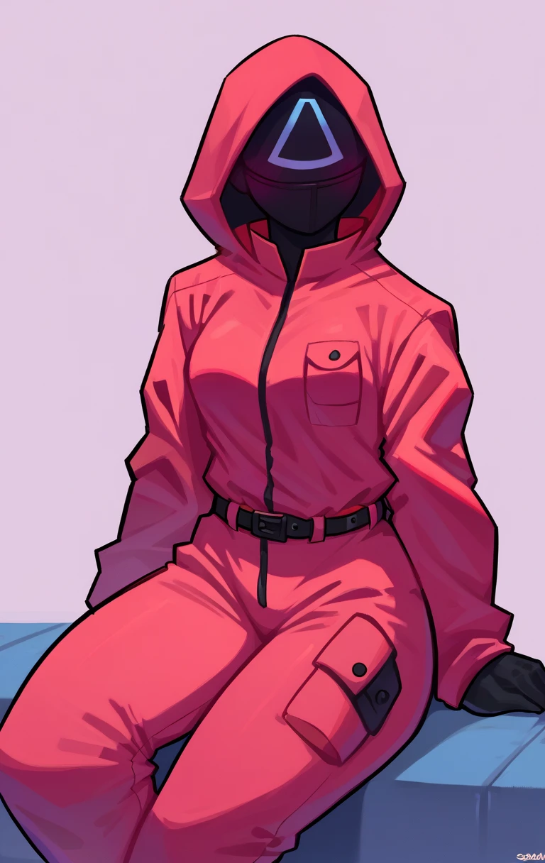 GuardsSQ,1girl,jacket,belt,pants,hood,mask,hood up,black belt,jumpsuit
