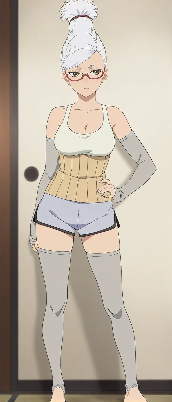 tank top, cleavage, shorts,thighhighs,anime coloring