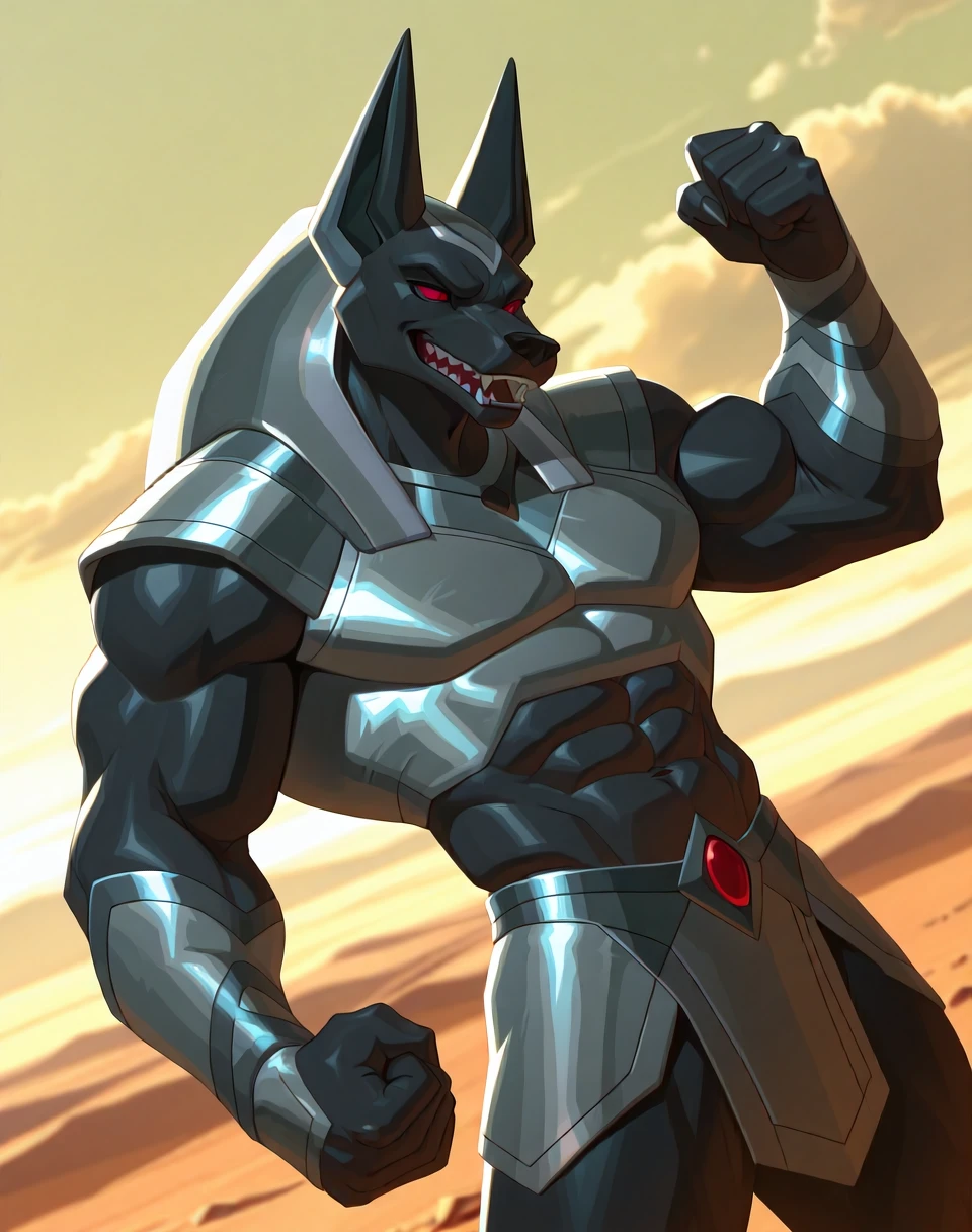 Prompts for this lora are ( AnubisEg, muscular, jackal, , ). It would help to also add the prompts ( armor, hairless, and nemes, midriff peek, ). Some checkpoints forgets to add the clothing over the and upper body area. Also, some checkpoints try to add hair instead of rendering a nemes, an ancient Egyptian style headdress that pharaohs and gods wore, instead. And some adds a armor that covers the abs as well when the abs are not supposed to be covered.