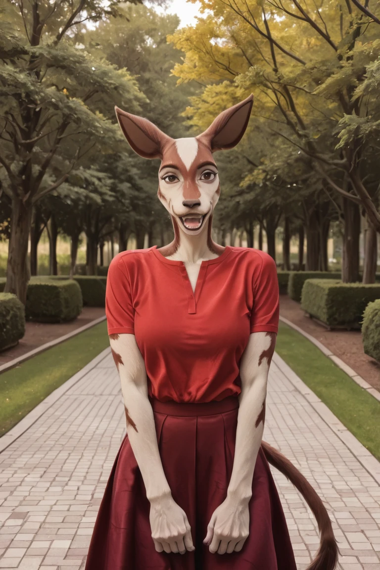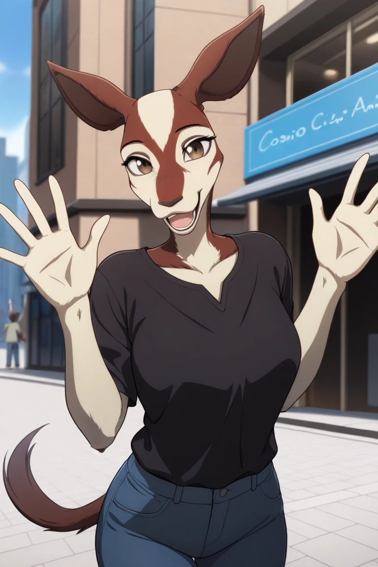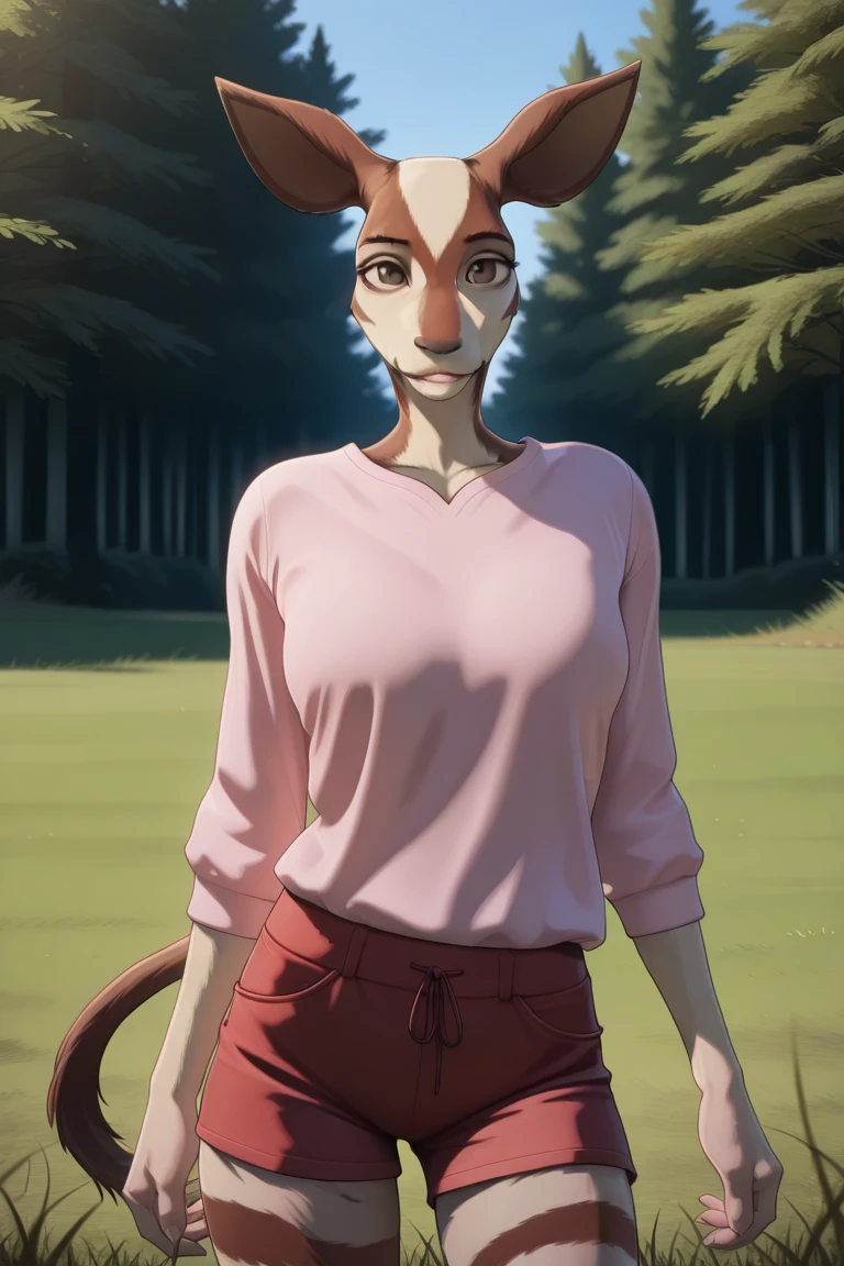 anthro, furry female, okapi ears, okapi tail,