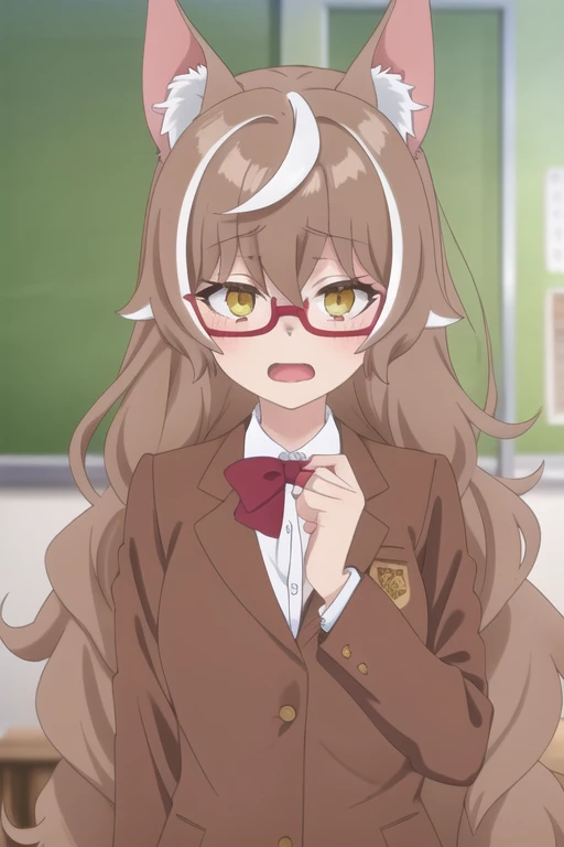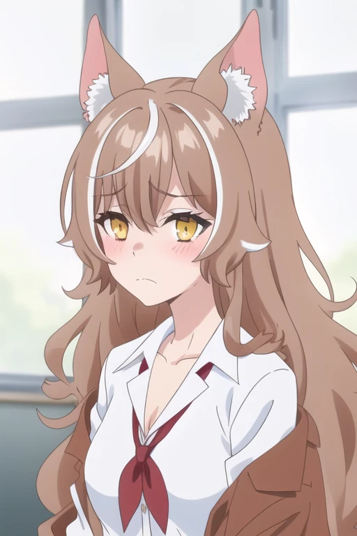 Trigger Words: ohgami isaki, long hair, brown hair, yellow eyes, wolf ears, wolf girl, animal ears, animal ear fluff