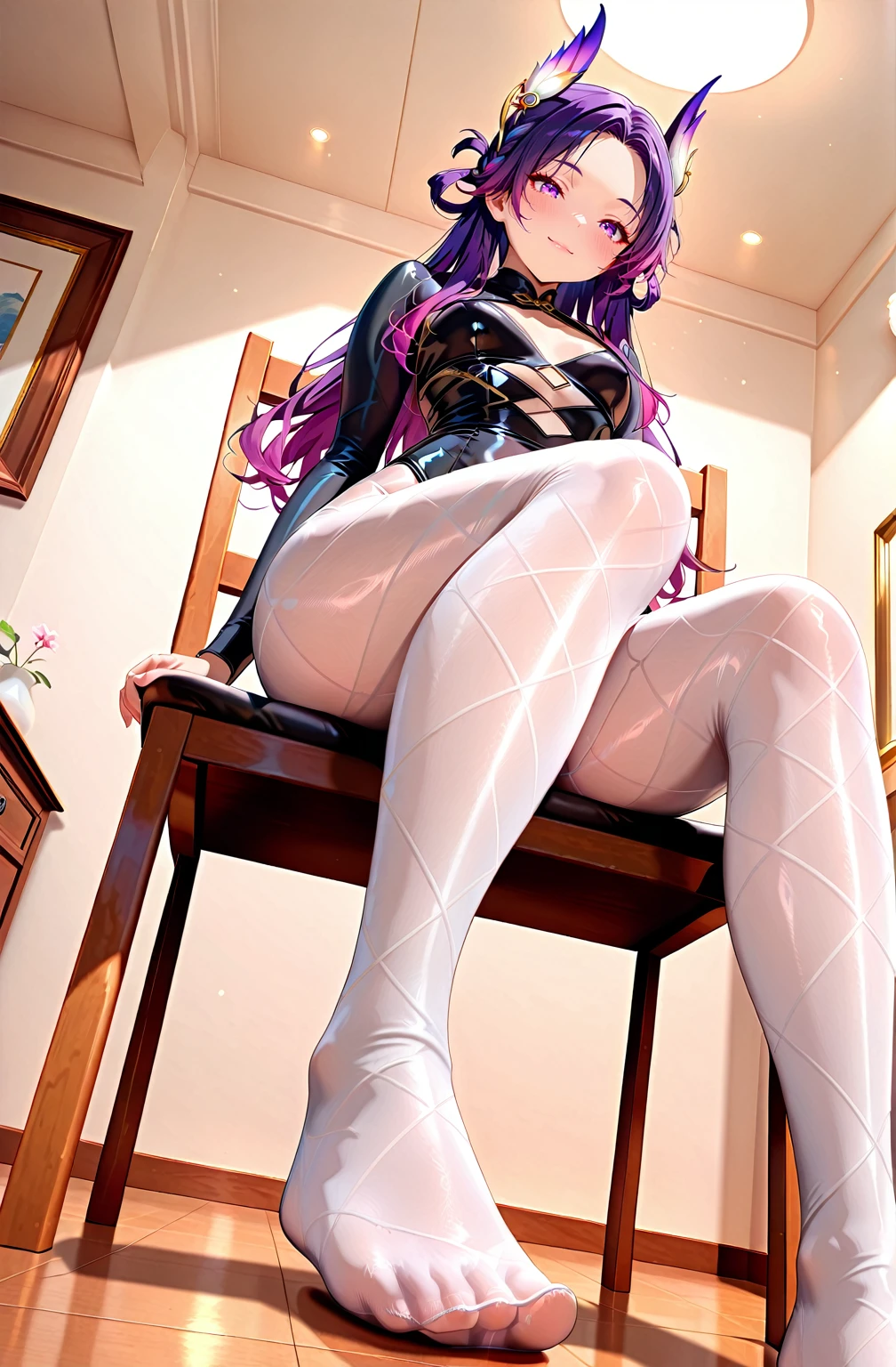 2. lora中训练了三种连裤袜颜色:白色,黑色,紫色。其他颜色有待尝试.-------Three pantyhose colors have been trained in the LoRA: white, black, and purple. Other colors are pending further testing.