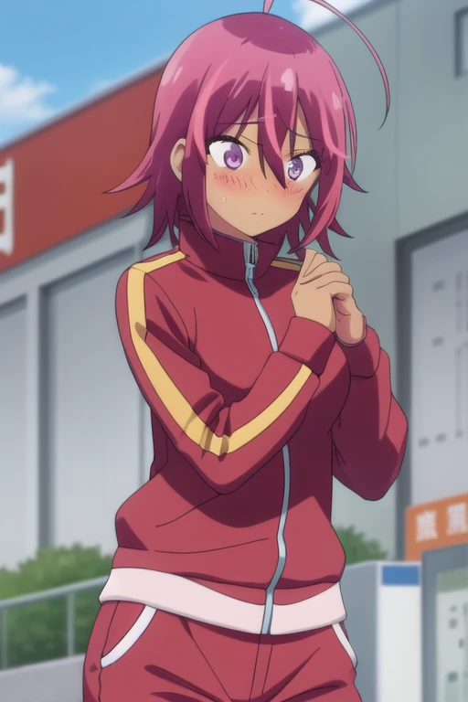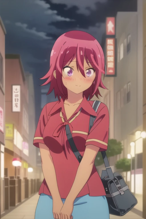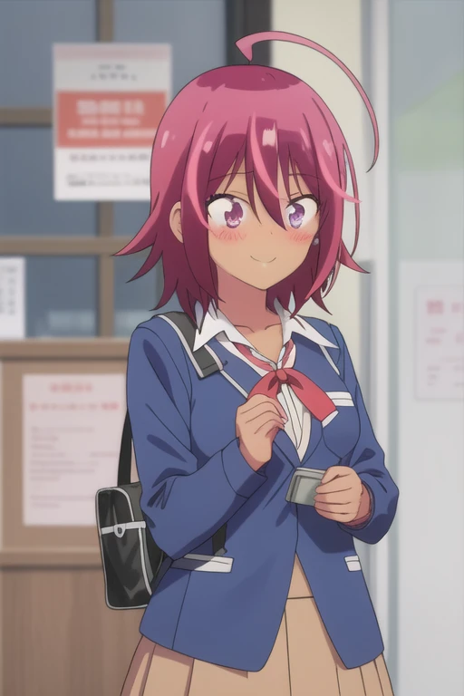 Trigger Words: takemoto uruka, dark skin, dark-skinned female, red hair, short hair, purple eyes