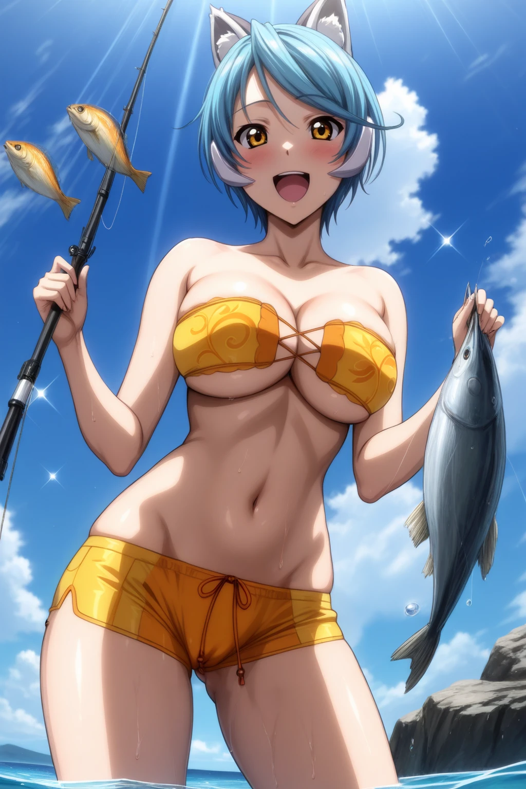 Activation tag: bikini_serena_aku. Use along yellow & orange bikini, bandeau, cross-laced bandeau, underboob, strapless, short shorts, micro shorts, and yellow & orange shorts.