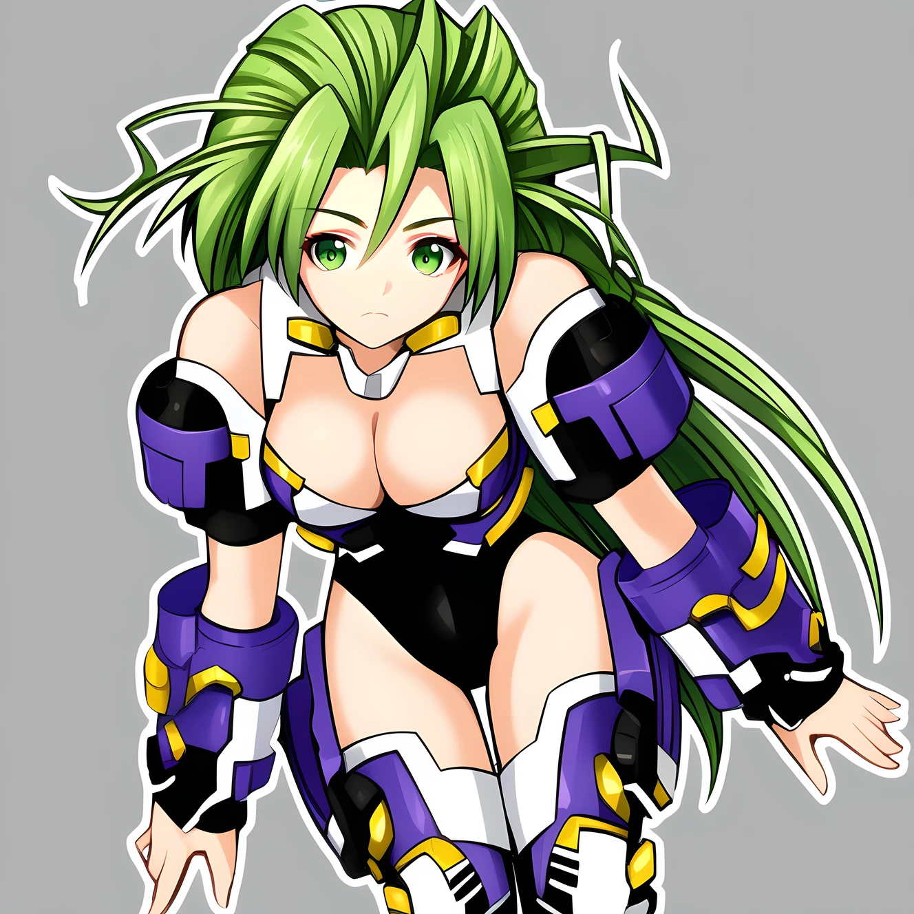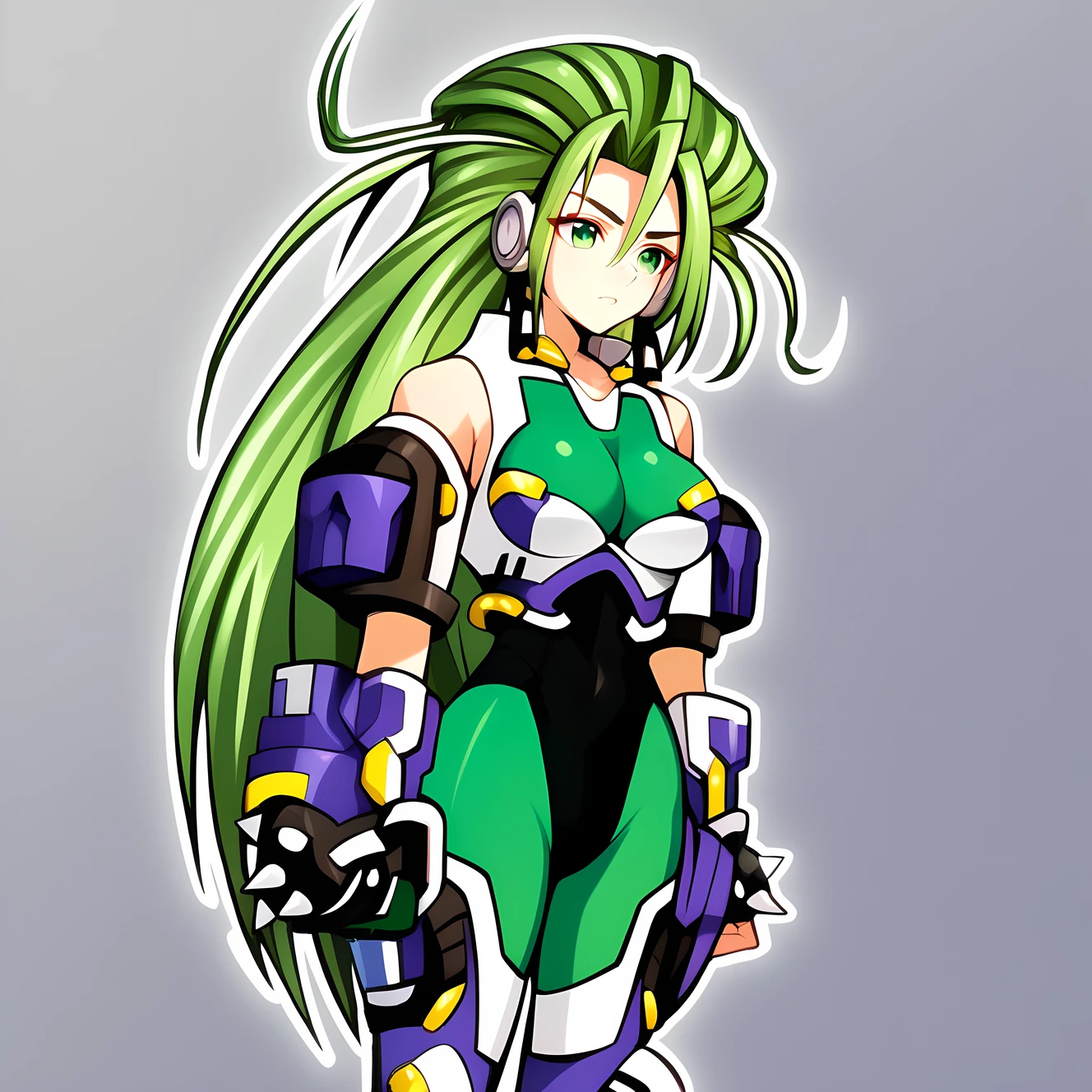 android, green eyes, green hair, long hair, medium breast,