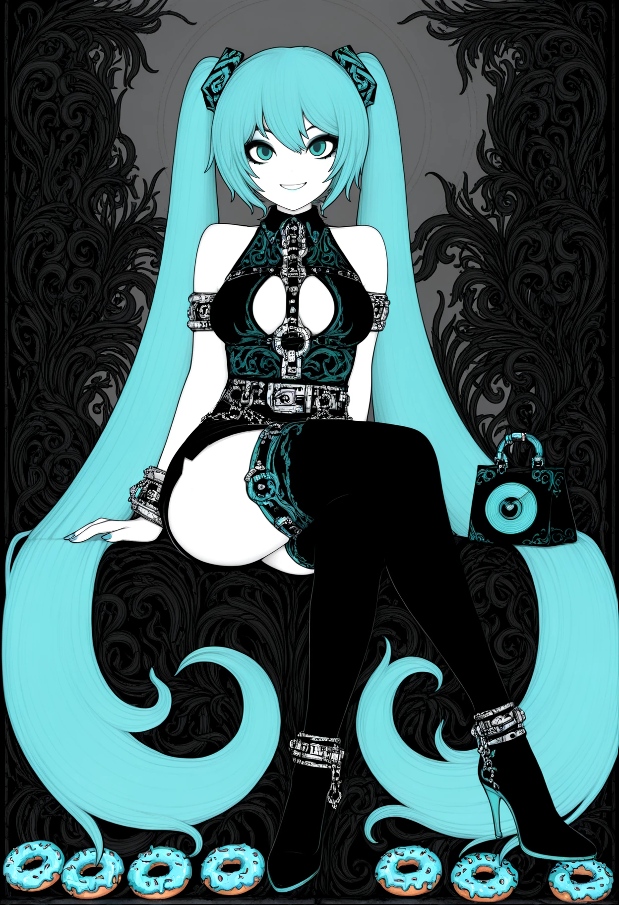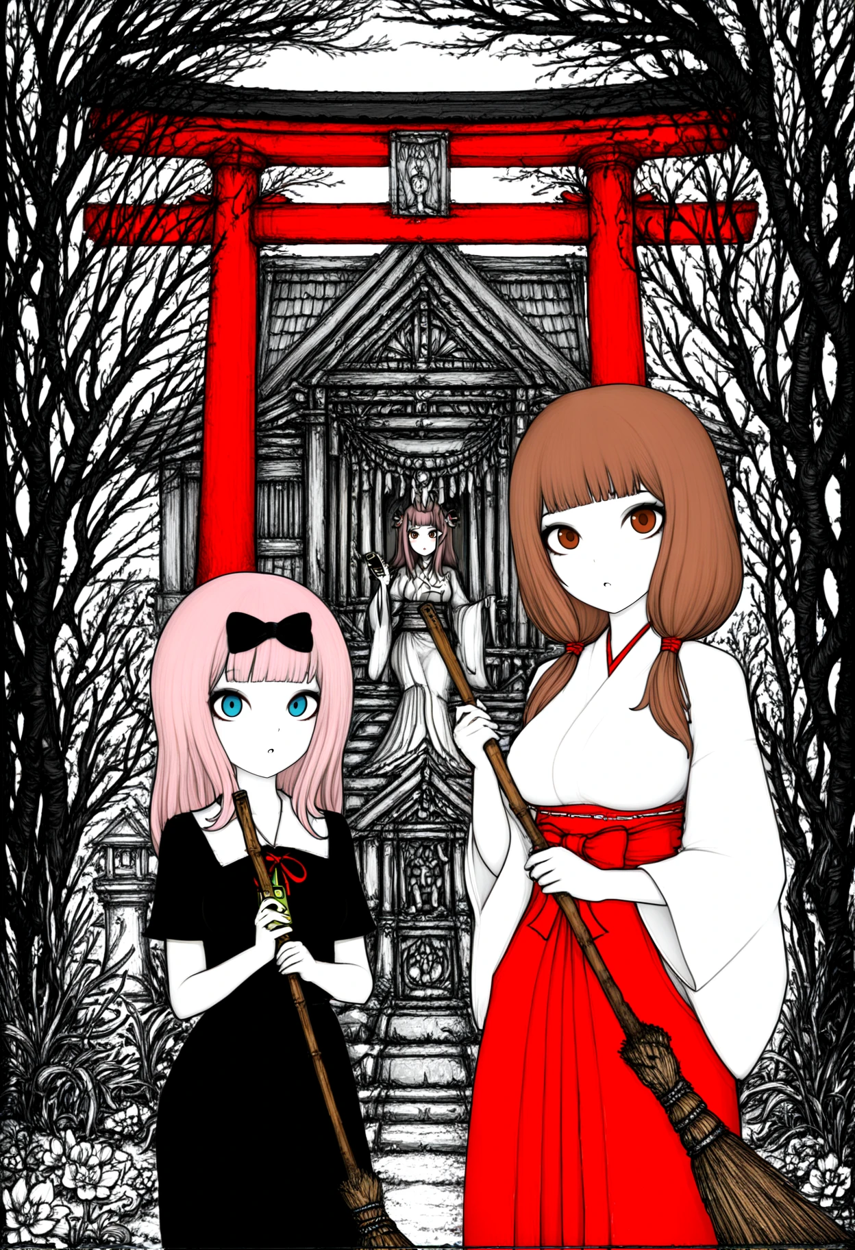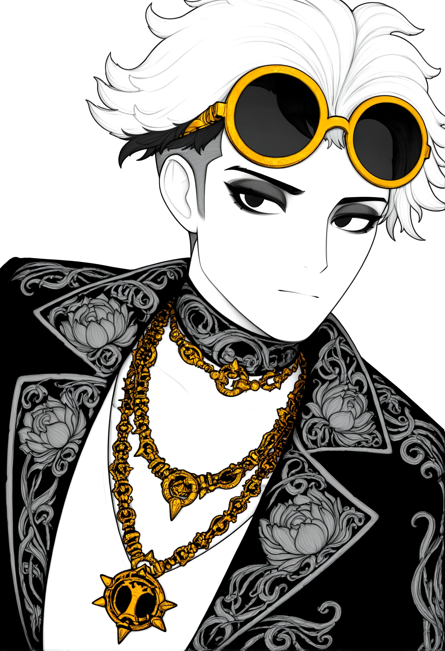 Ltstry’s style merges gothic fantasy with ornamental surrealism, presenting ethereal anime-inspired figures within intricately patterned worlds. The artist employs a restrained palette (often monochrome accented with gold or crimson) to highlight the contrast between purity and opulence. Detailed filigree, baroque motifs, and symmetrical compositions evoke a sense of sacred ritualism and dark elegance. Ltstry’s characters, with their calm, distant expressions and elaborate attire, stand as icons of mystic beauty suspended between innocence and divinity.