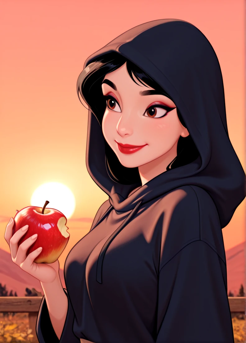 black hair, very long hair, brown eyes, lipstick, red lips, make-up, dark-skinned female