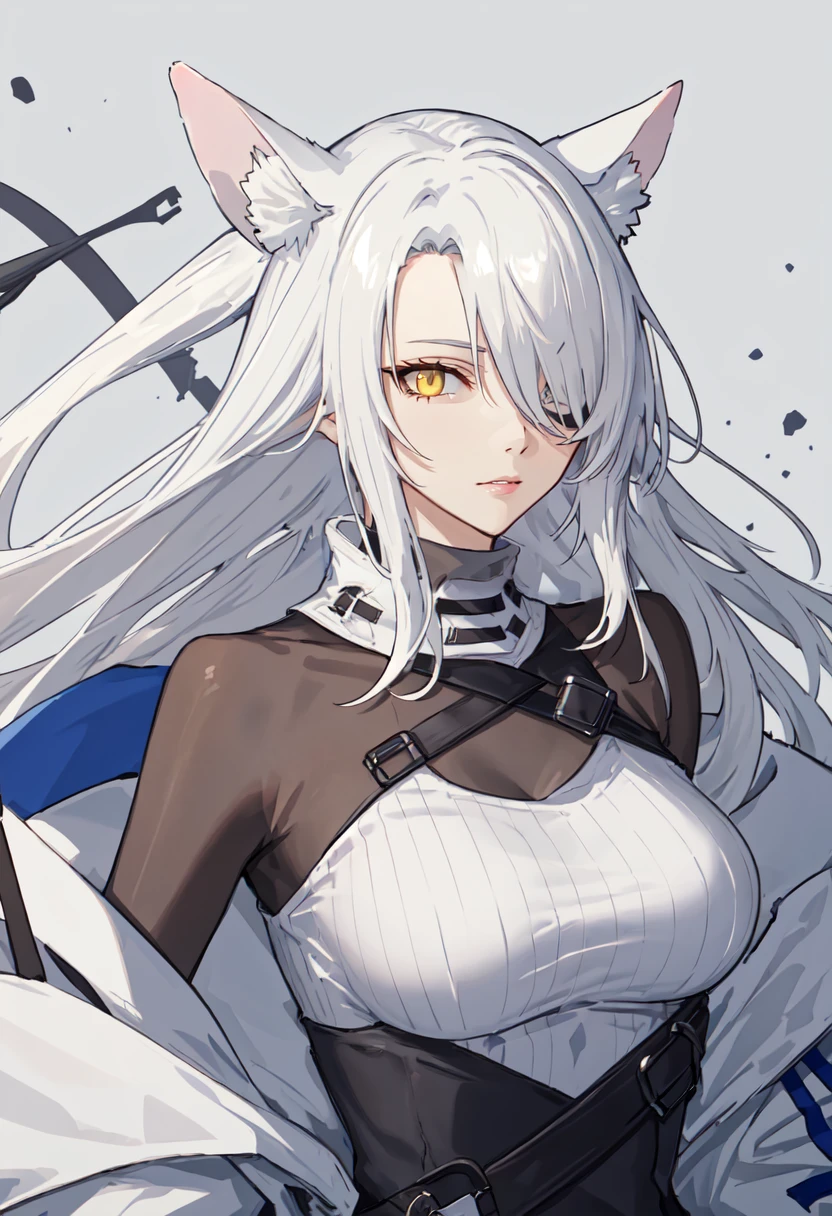 - The pruned character tags are animal ears, breasts, long hair, hair over one eye, yellow eyes, hat, white hair, animal ear fluff, large breasts, white headwear, fox ears, very long hair, tail, fox tail. You can add them into prompts when core features (e.g. hair color) of character is not so stable.