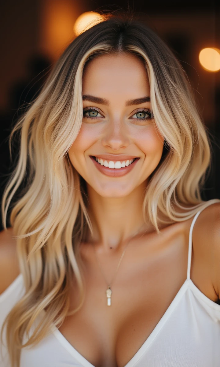 Luna is a 25 year-old blonde woman from USA. Her facial features are striking yet balanced, creating a timeless and understated elegance. She carries herself with a quiet confidence and an air of thoughtful self-awareness. Her presence speaks for itself. Intelligent, grounded, and composed, Luna is unforgettable—mysterious, and effortlessly captivating.
