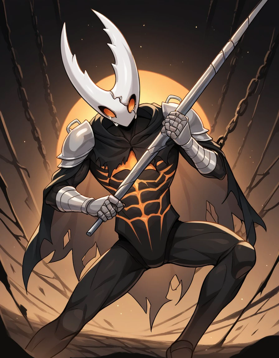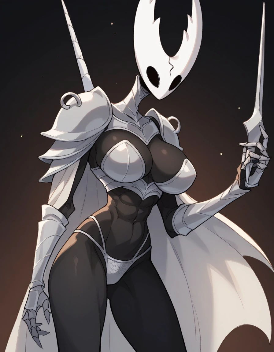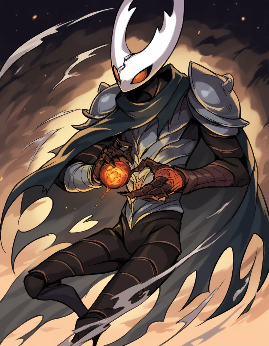 if you don't want to have the eye scar that the Hollow Knight has, put: scar, scars, crack, cracks, into the negative prompt. Also if you want to make sure you don't generate armor, put: armor, into the negative tags.
