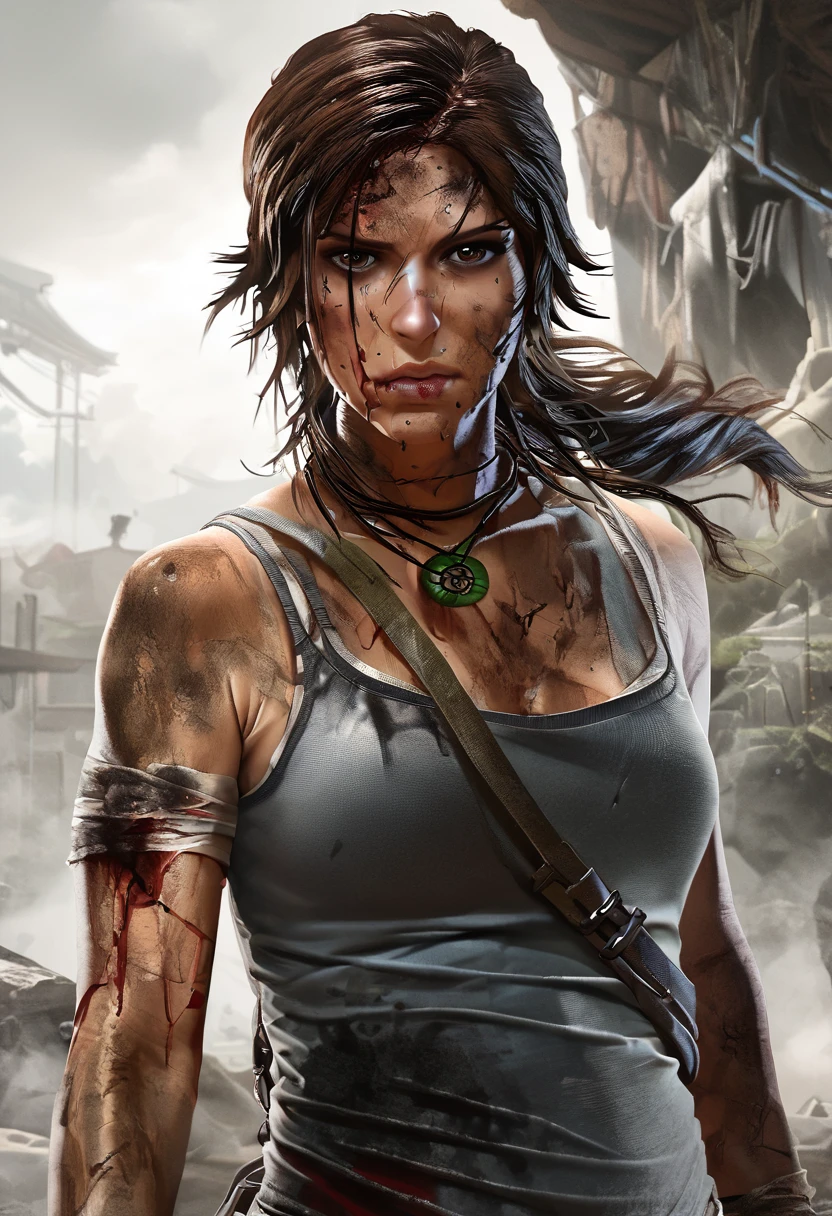 lara croft, light blue tank top, brown pants